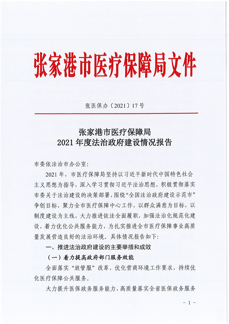 張家港市醫療保障局2021年度法治政府建設情況報告