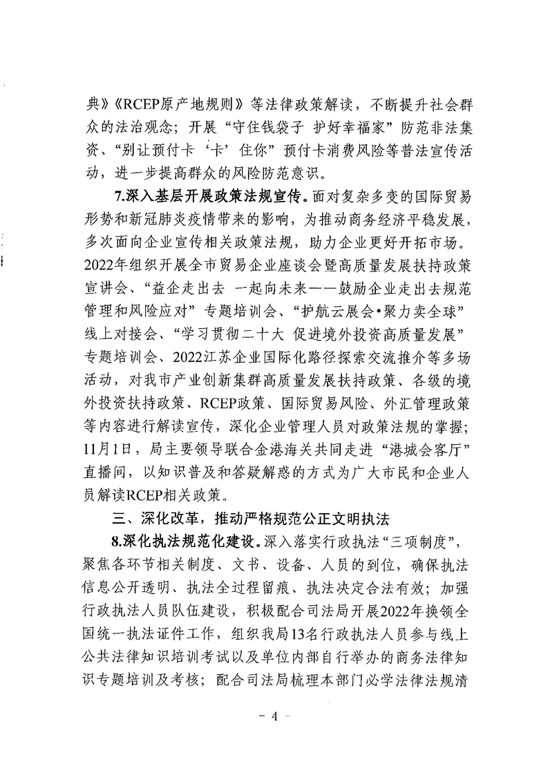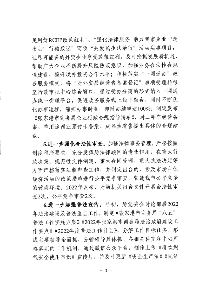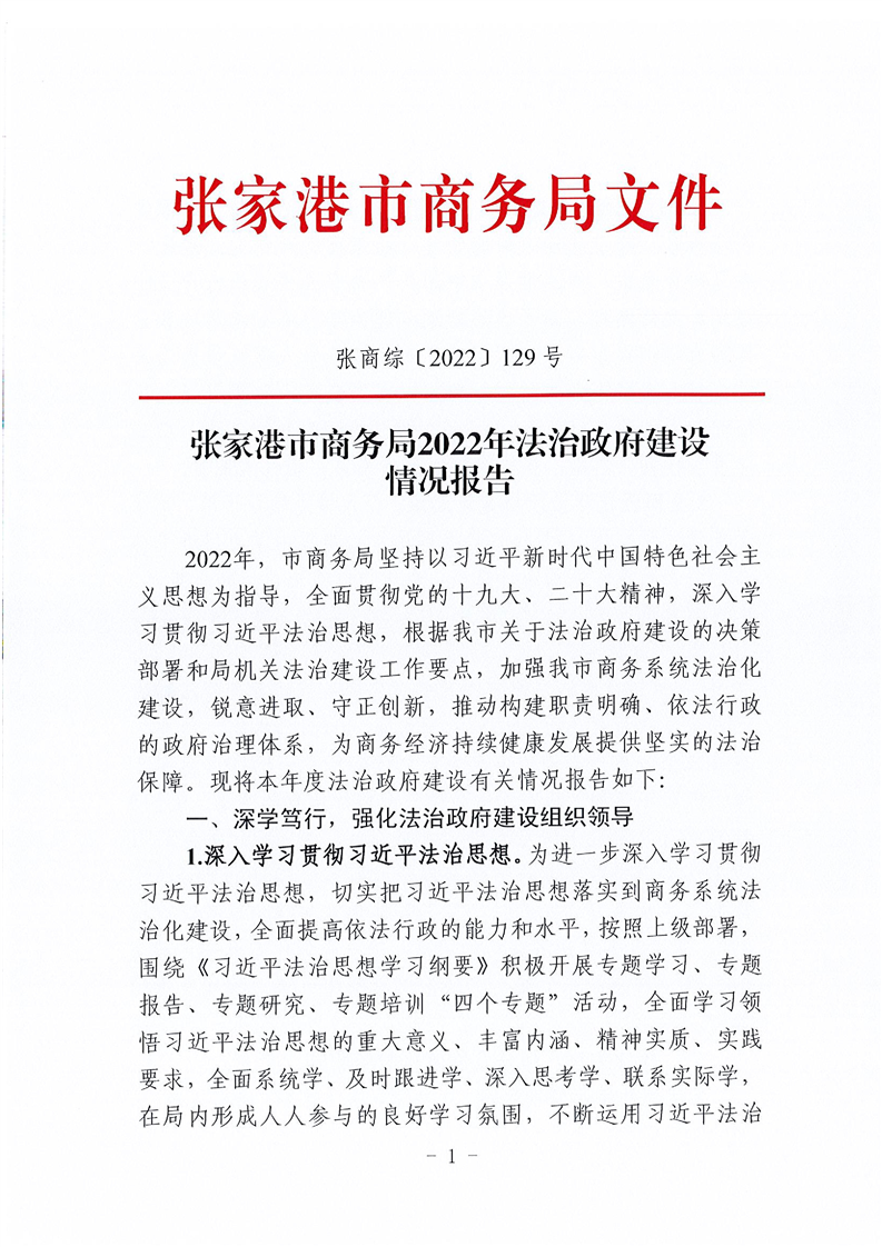 張家港市商務(wù)局2022年法治政府建設(shè)情況報(bào)告