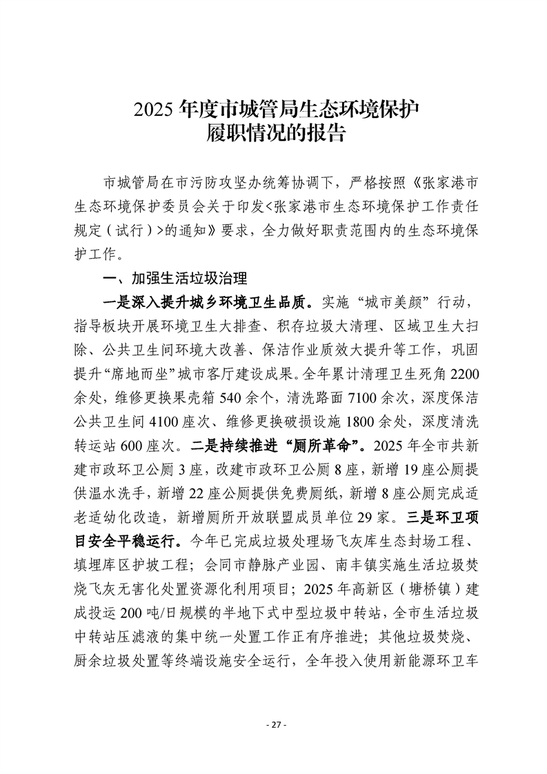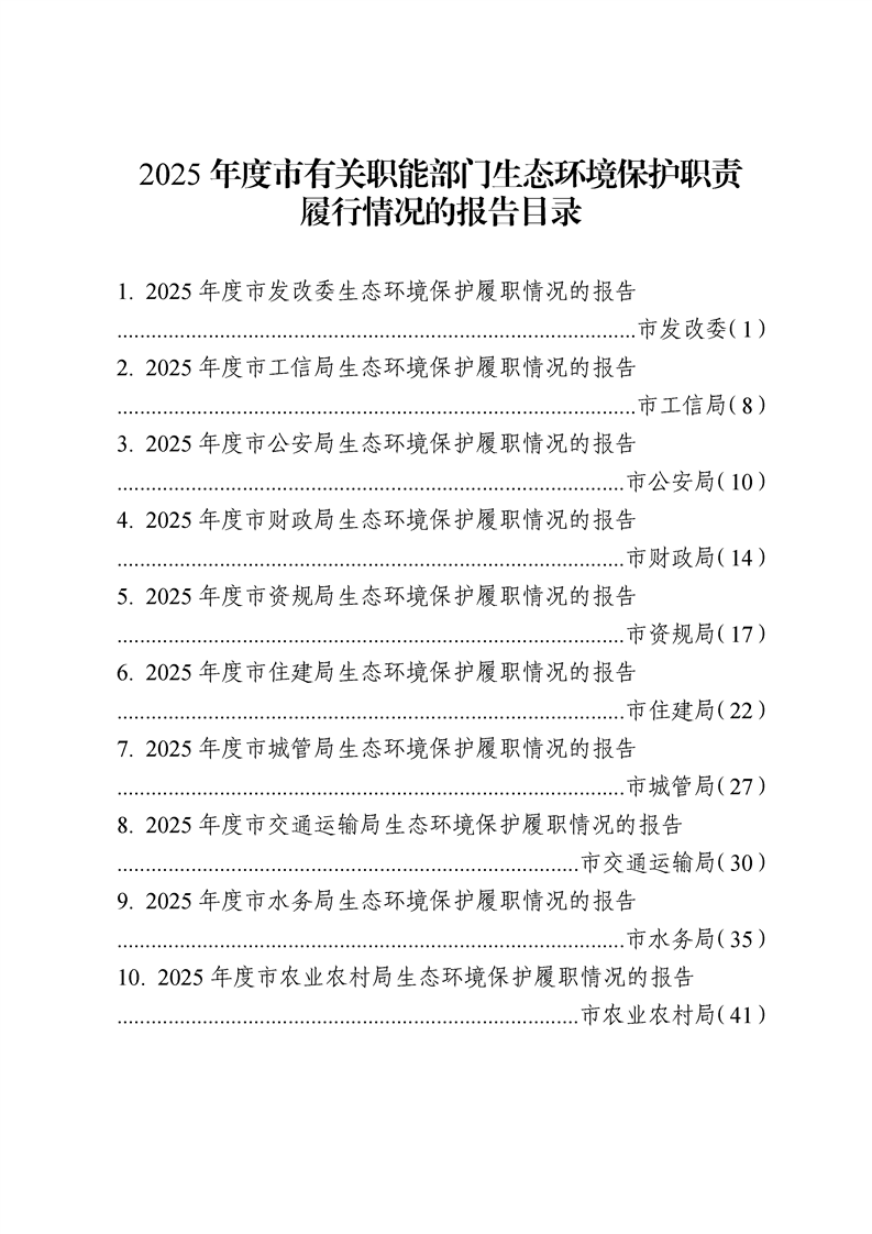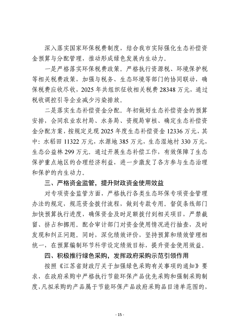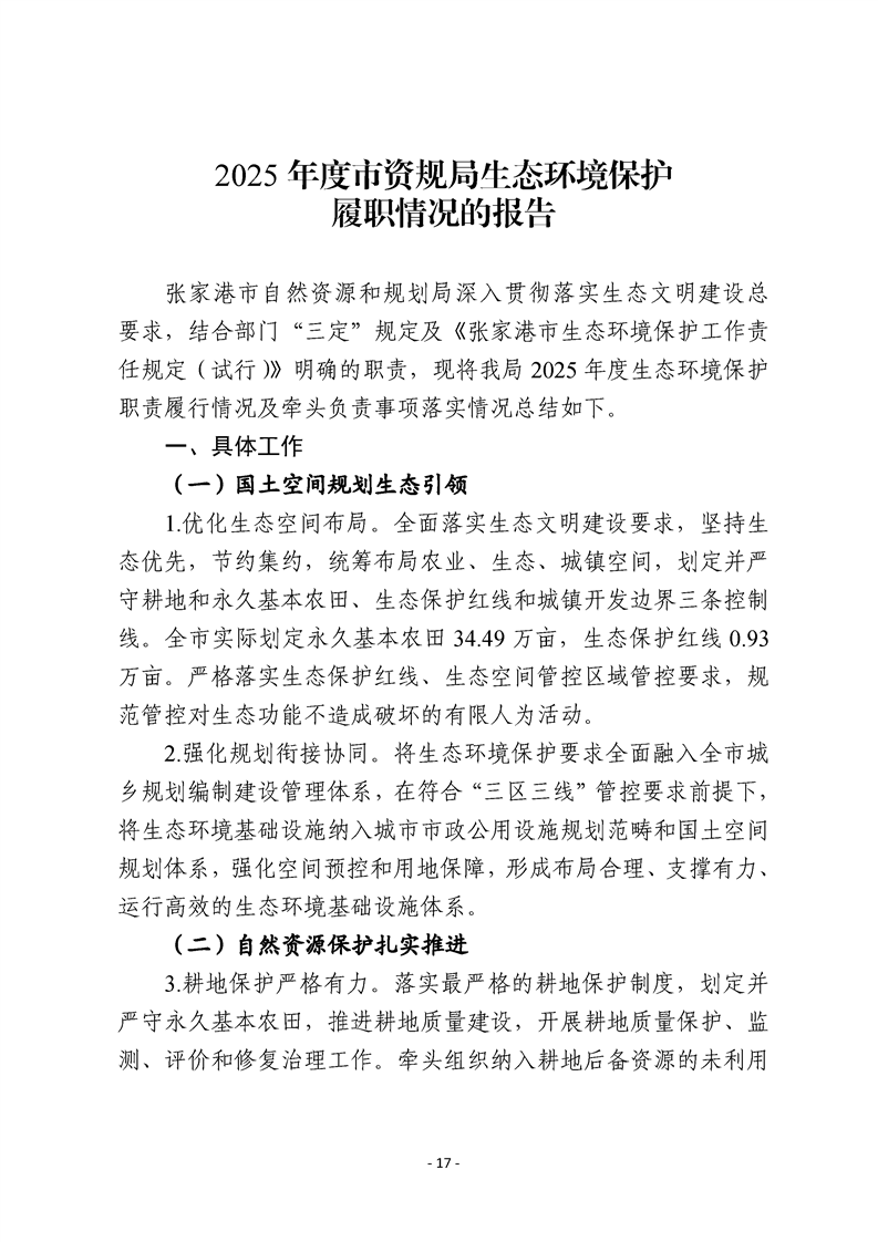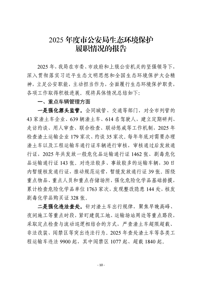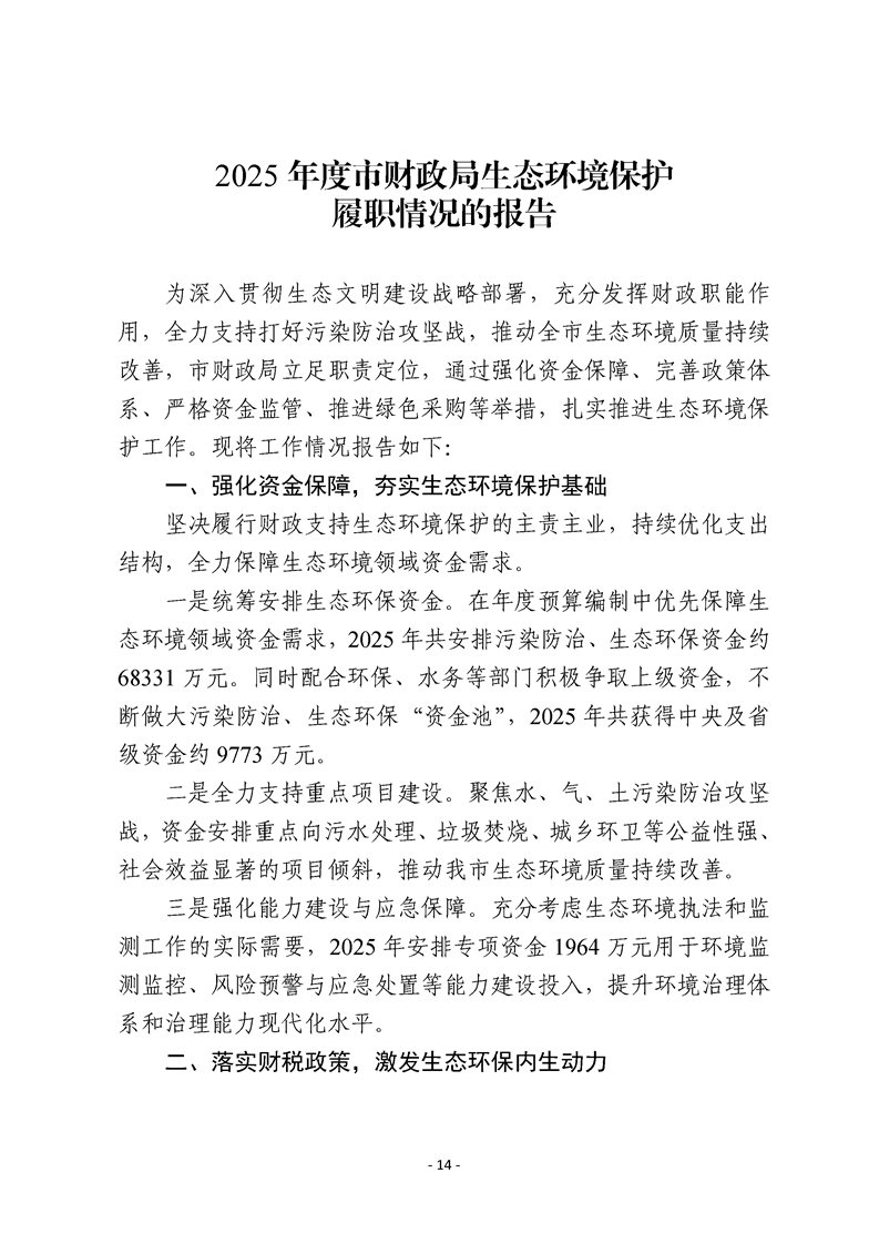 2025年度市有關職能部門生態環境保護職責履行情況的報告