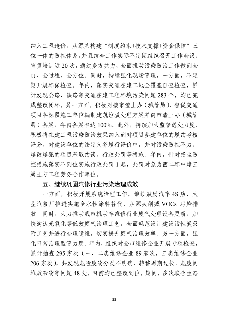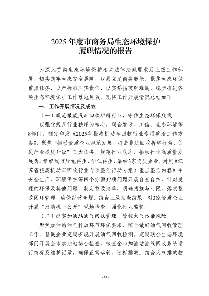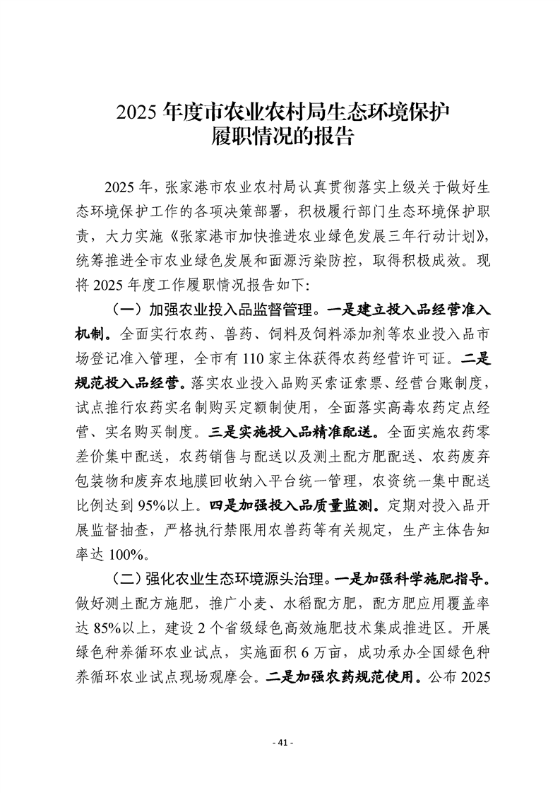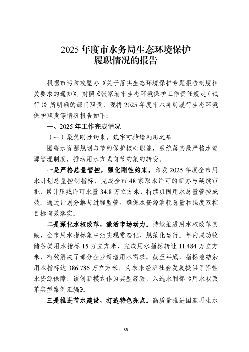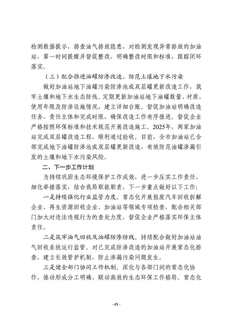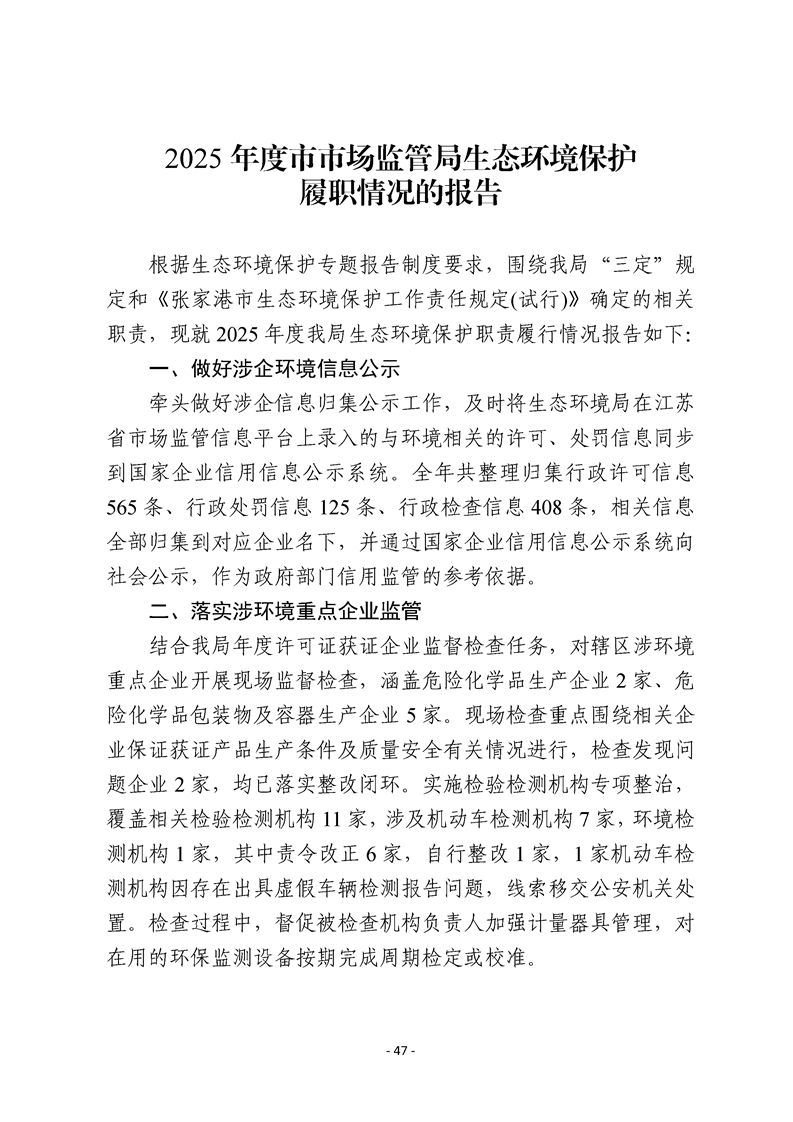 2025年度市有關職能部門生態環境保護職責履行情況的報告