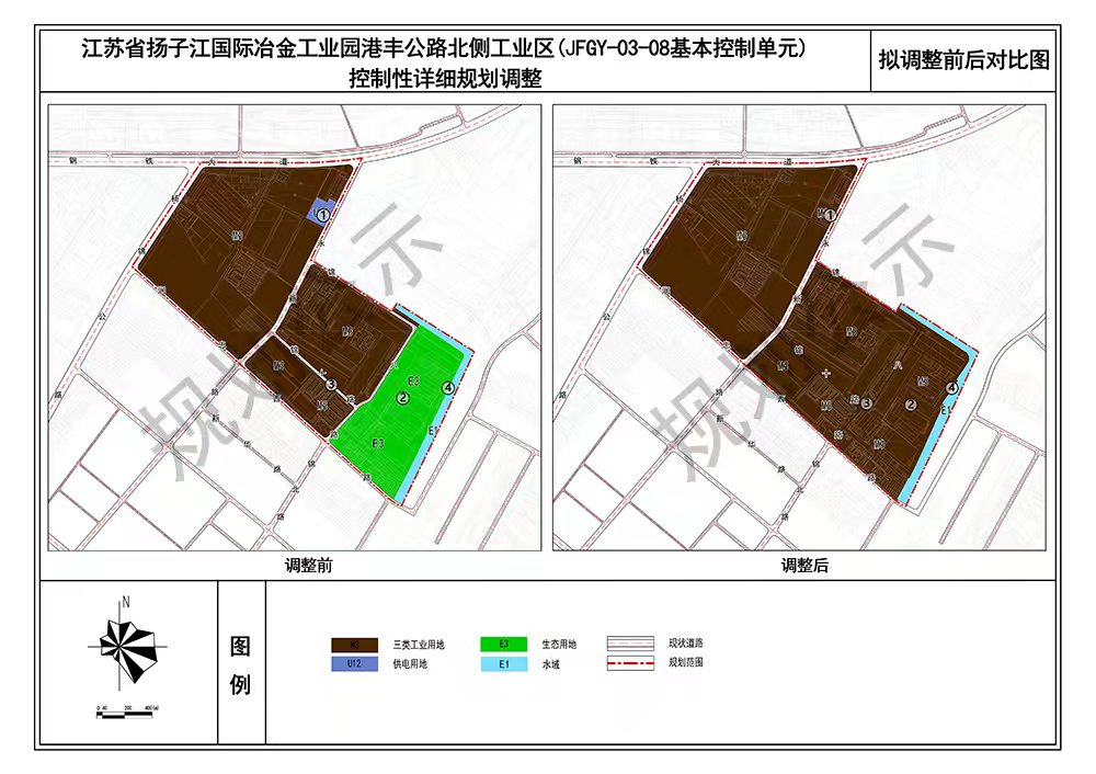 根據《中華人民共和國城鄉規劃法》要求,現將《江蘇省揚子江國際冶金工業園港豐公路北側工業區(JFGY-03-08基本控制單元)控制性詳細規劃調整》主要內容進行報批前公示,征求公眾意見。公示時間為2025年12月31日至2026年1月30日,在此期間,公眾如有意見和建議,請致電:0512-58959027(冶金園規劃建設局)。