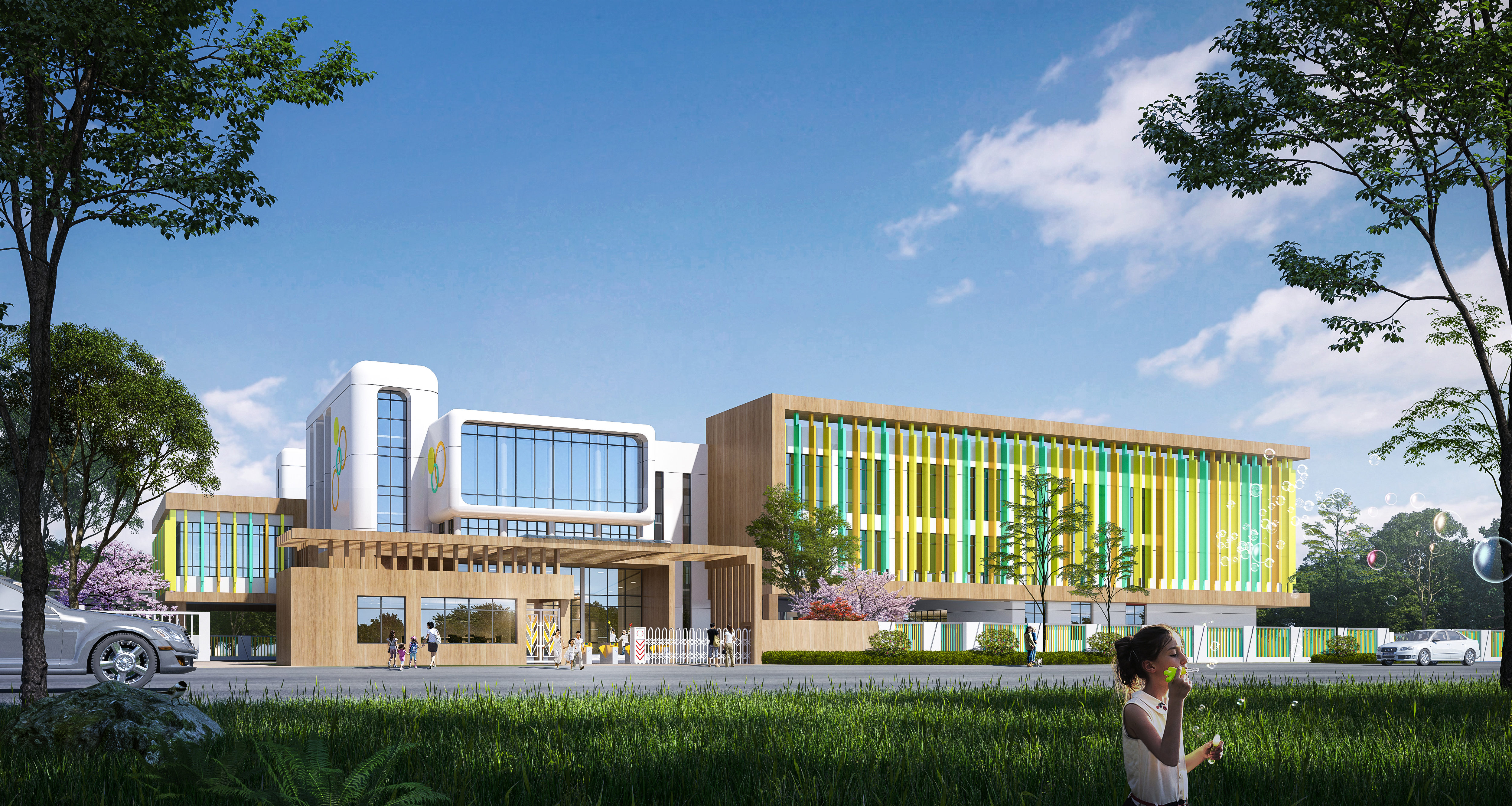 幼兒園設有美術室、繪本館、建構室、科發館等各種特色功能場館,開放式的空間設計,為幼兒提供安全、環保、健康、舒適的成長環境。園所結合韓山千年福地的地域特色,立足幼兒教育指導綱要,回歸最樸素的教育初心;通過“幸福教育”理念,讓教育者(老師)和被教育者(幼兒)在幼兒園實現幸福的教學、幸福的成長,把幼兒園打造成“一座讓兒童快樂成長的幸福花園”。