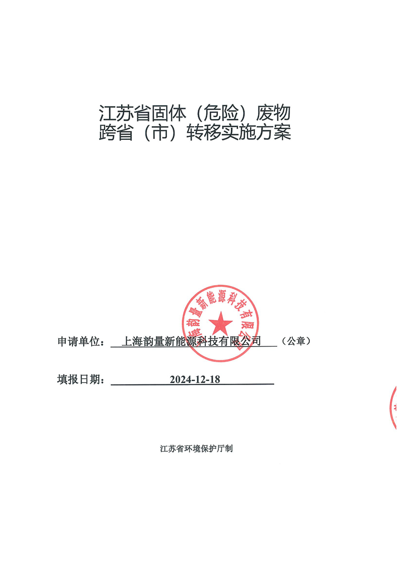上海韻量新能源科技有限公司跨省轉(zhuǎn)移至莊信萬豐(張家港)貴金屬材料科技有限公司實(shí)施方案