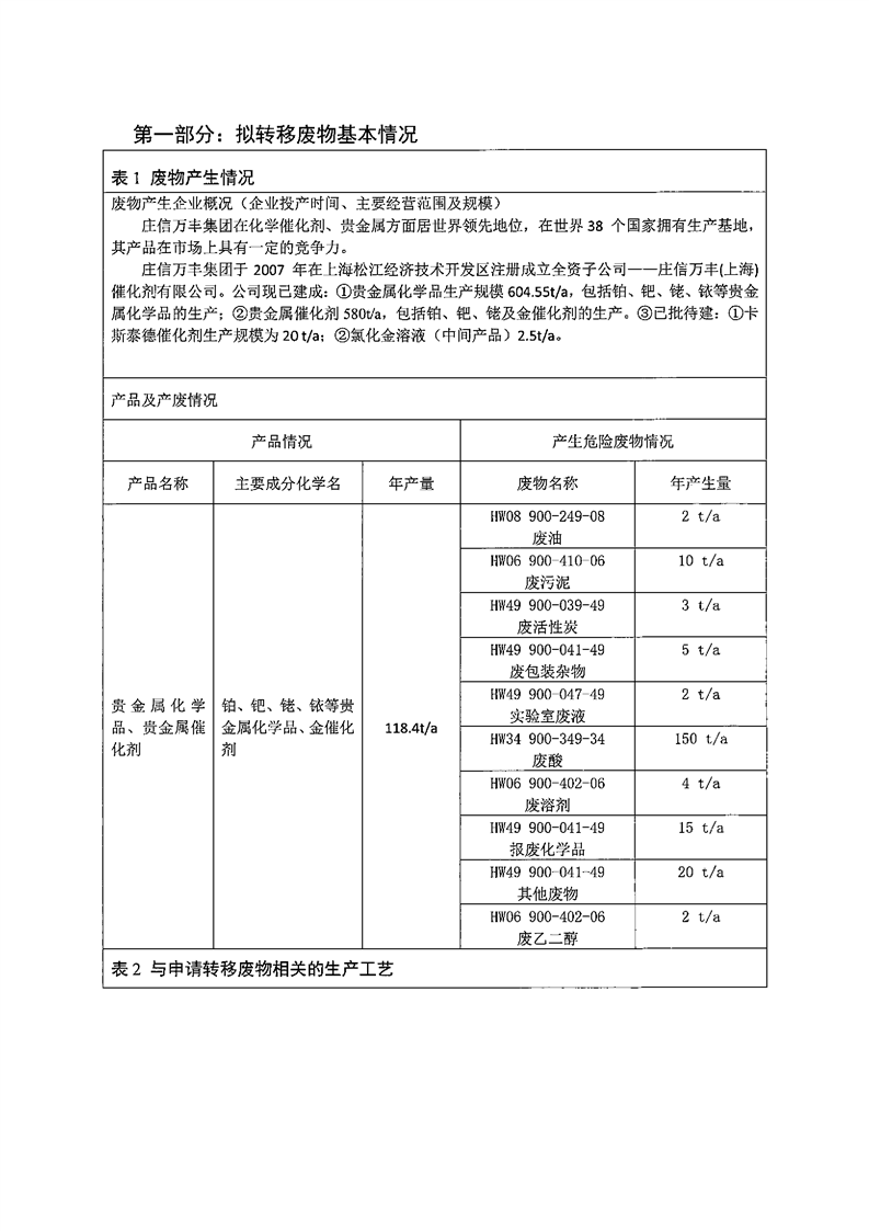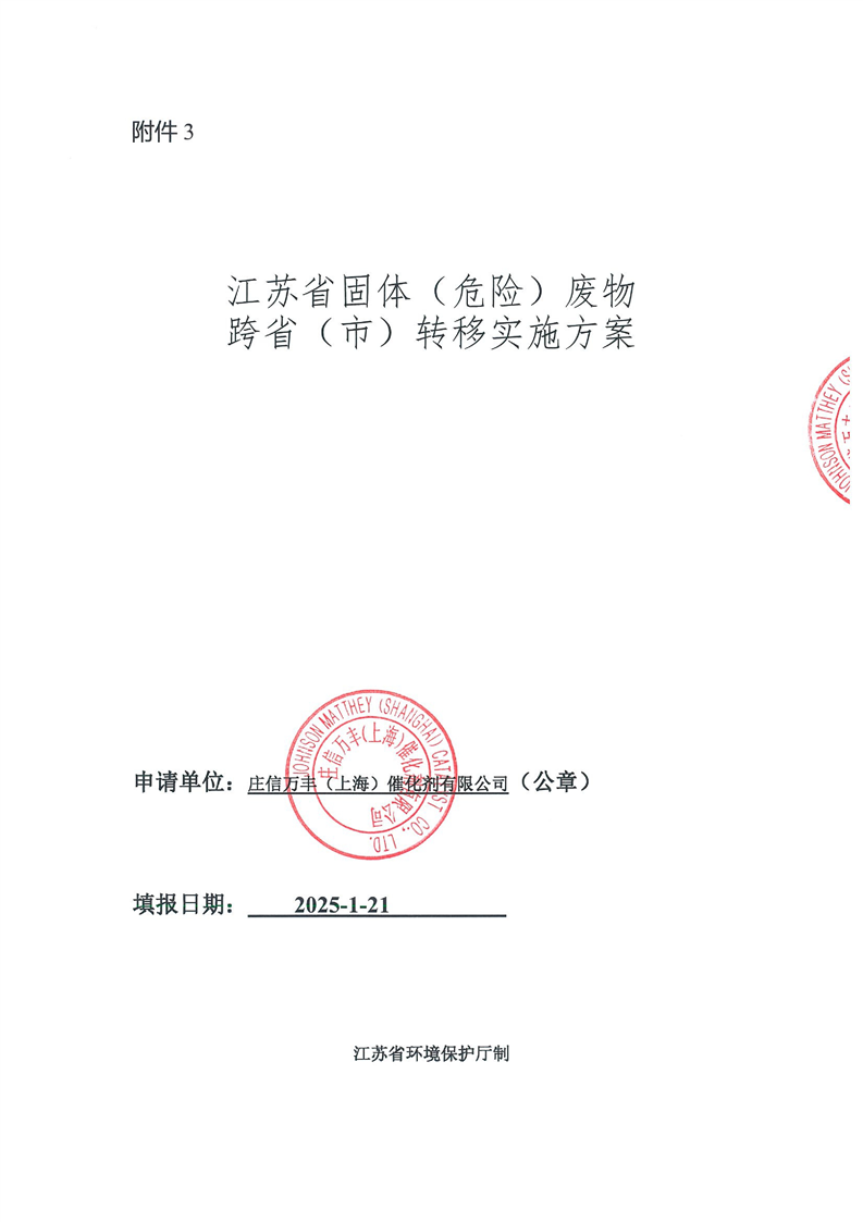 莊信萬(wàn)豐(上海)催化劑有限公司跨省轉(zhuǎn)移至莊信萬(wàn)豐(張家港)貴金屬材料科技有限公司實(shí)施方案