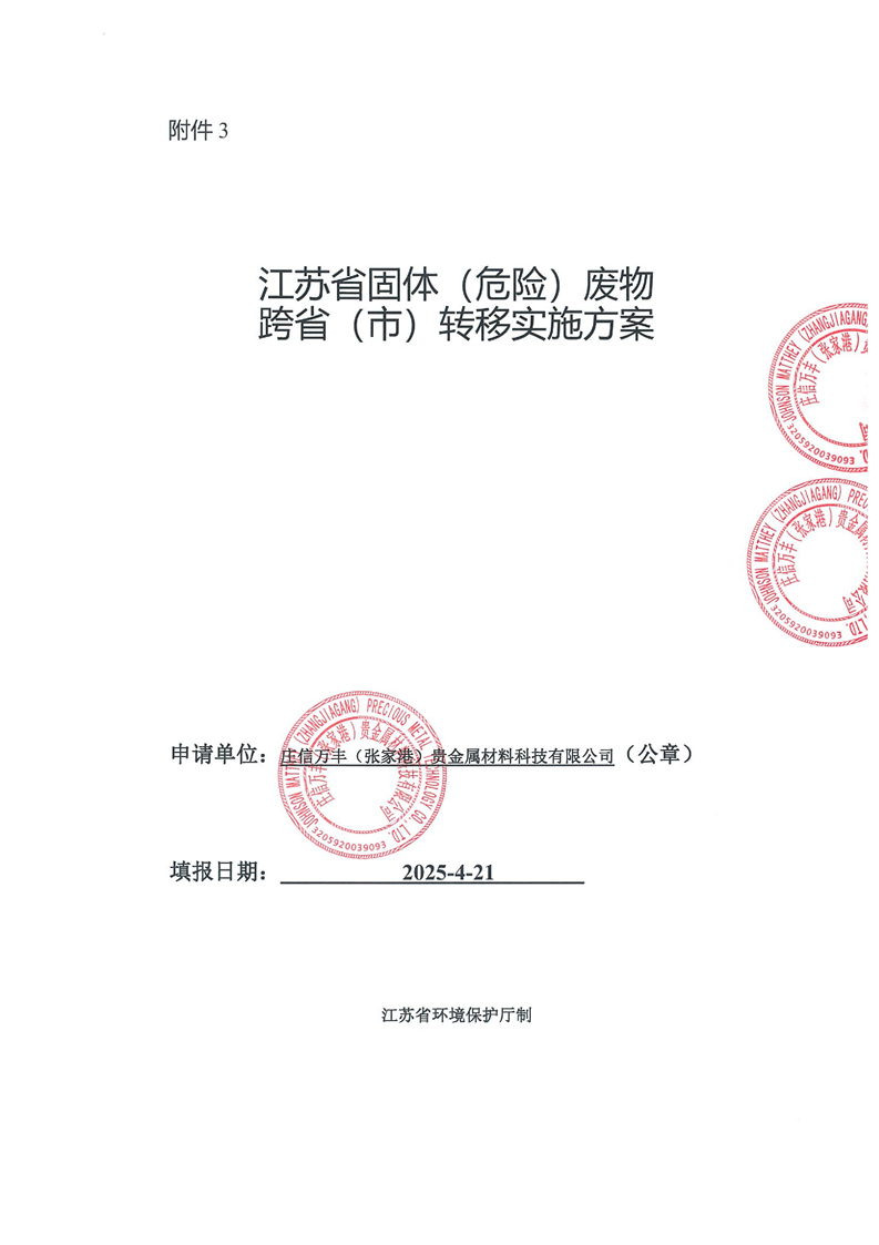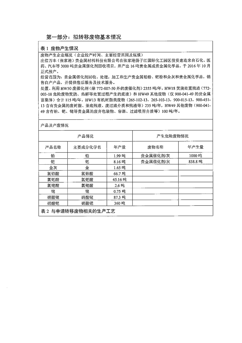 莊信萬豐(張家港)貴金屬材料科技有限公司跨省轉(zhuǎn)移至貴研資源(易門)有限公司實施方案