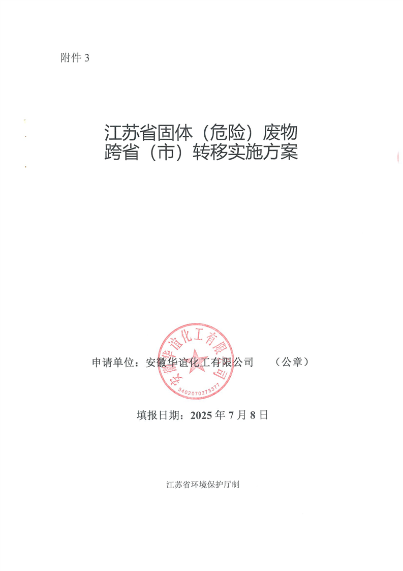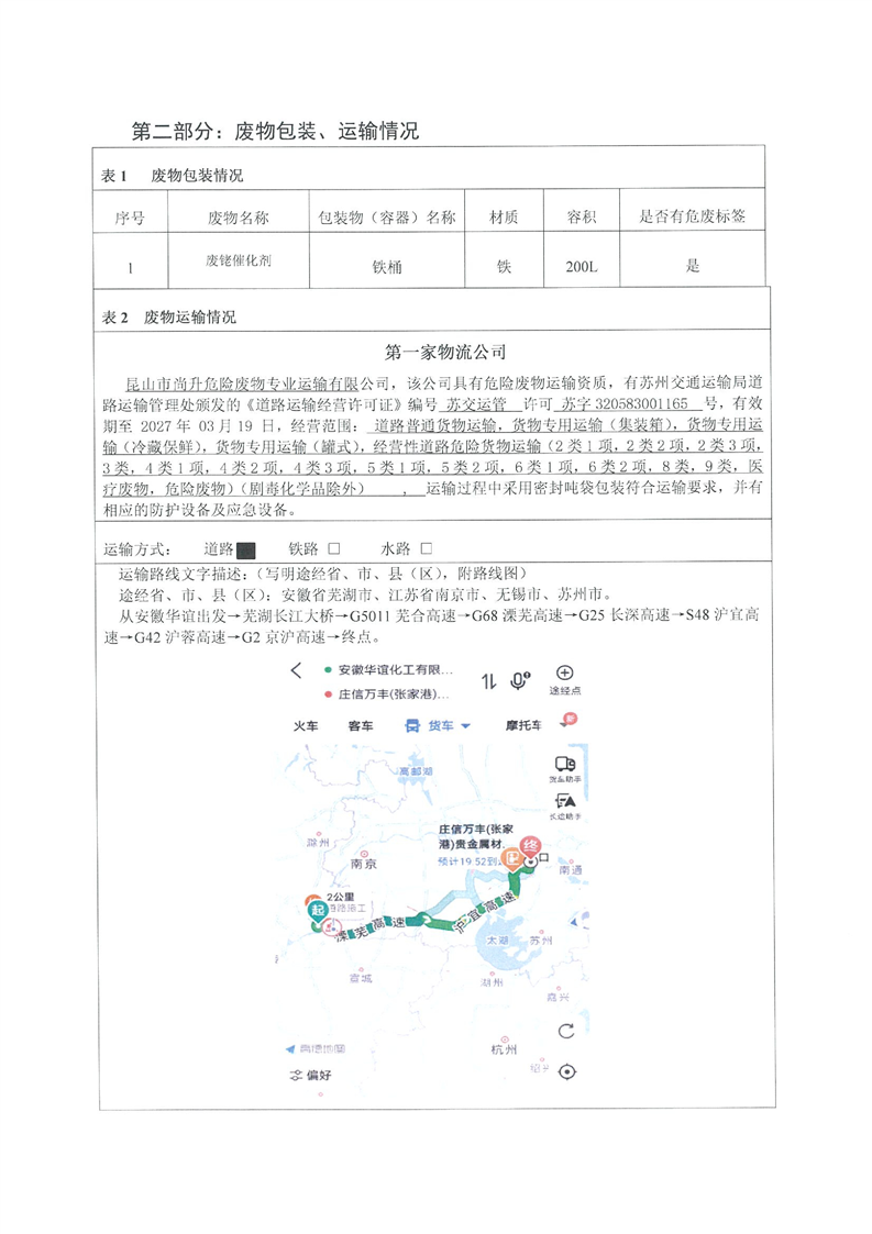 安徽華誼化工有限公司跨省轉移至莊信萬豐(張家港)貴金屬材料科技有限公司轉移實施方案