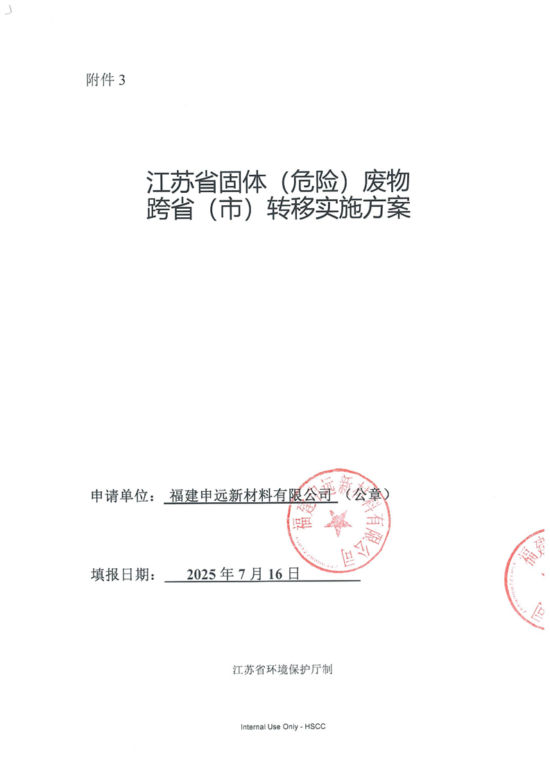福建申遠新材料有限公司跨省轉(zhuǎn)移至莊信萬豐(張家港)貴金屬材料科技有限公司轉(zhuǎn)移實施方案