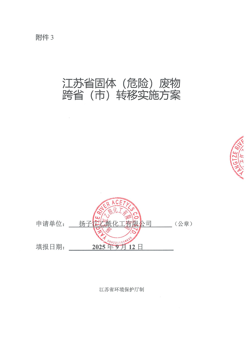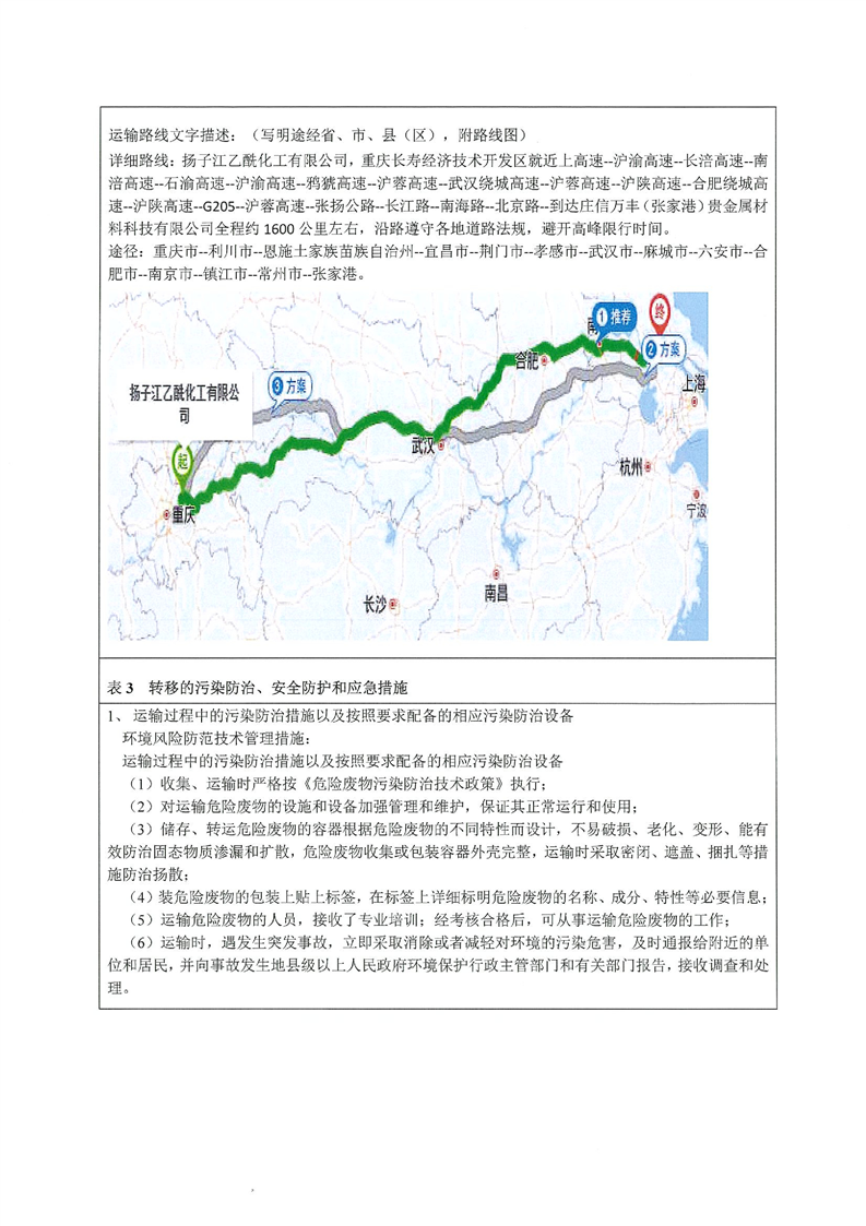 揚子江乙酰化工有限公司跨省轉移至莊信萬豐(張家港)貴金屬材料科技有限公司轉移實施方案