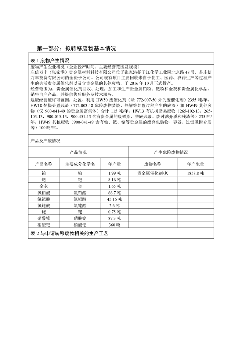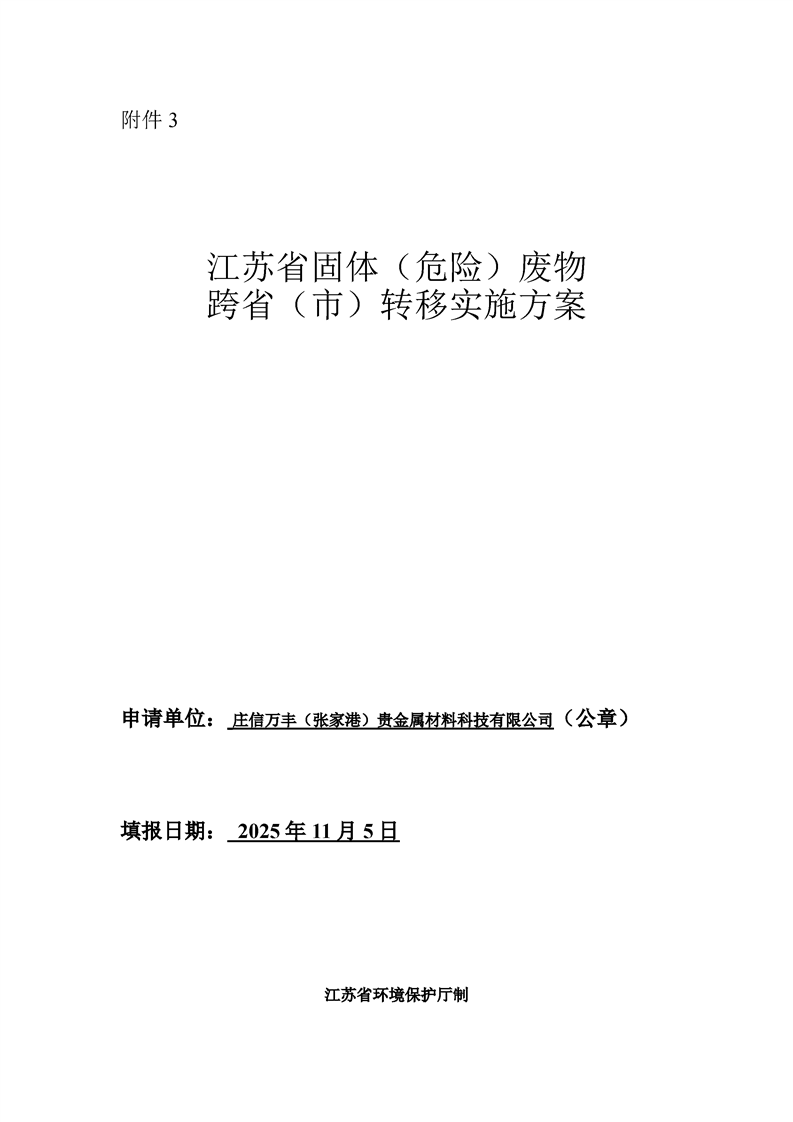 莊信萬豐(張家港)貴金屬材料科技有限公司跨省轉移至福建有道貴金屬材料科技有限公司實施方案