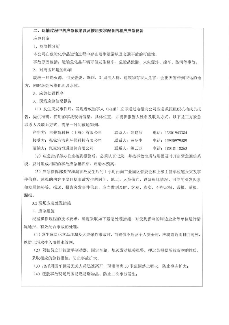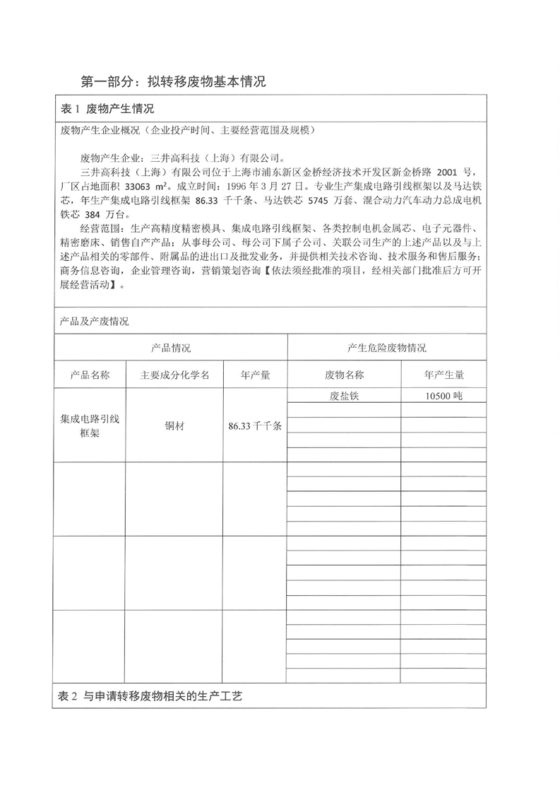 三井高科技(上海)有限公司跨省轉移至張家港潔利環保科技有限公司轉移實施方案