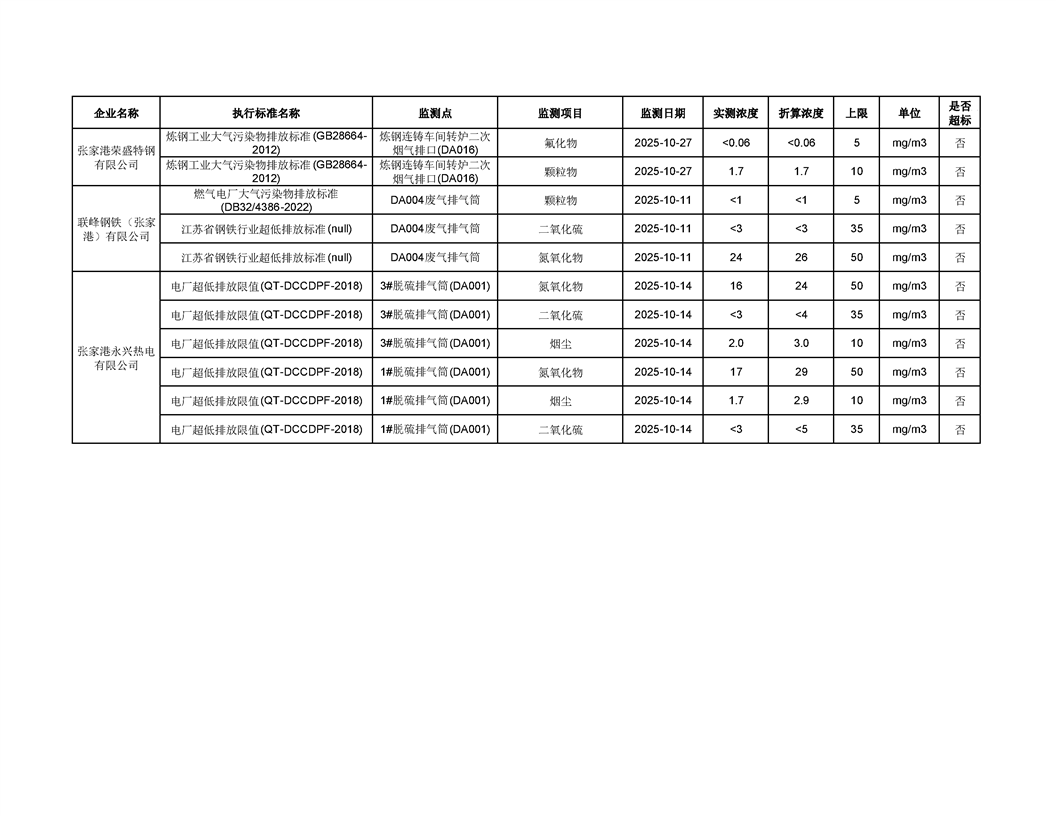 2025年張家港市重點排污單位廢氣監督監測(第二批)
