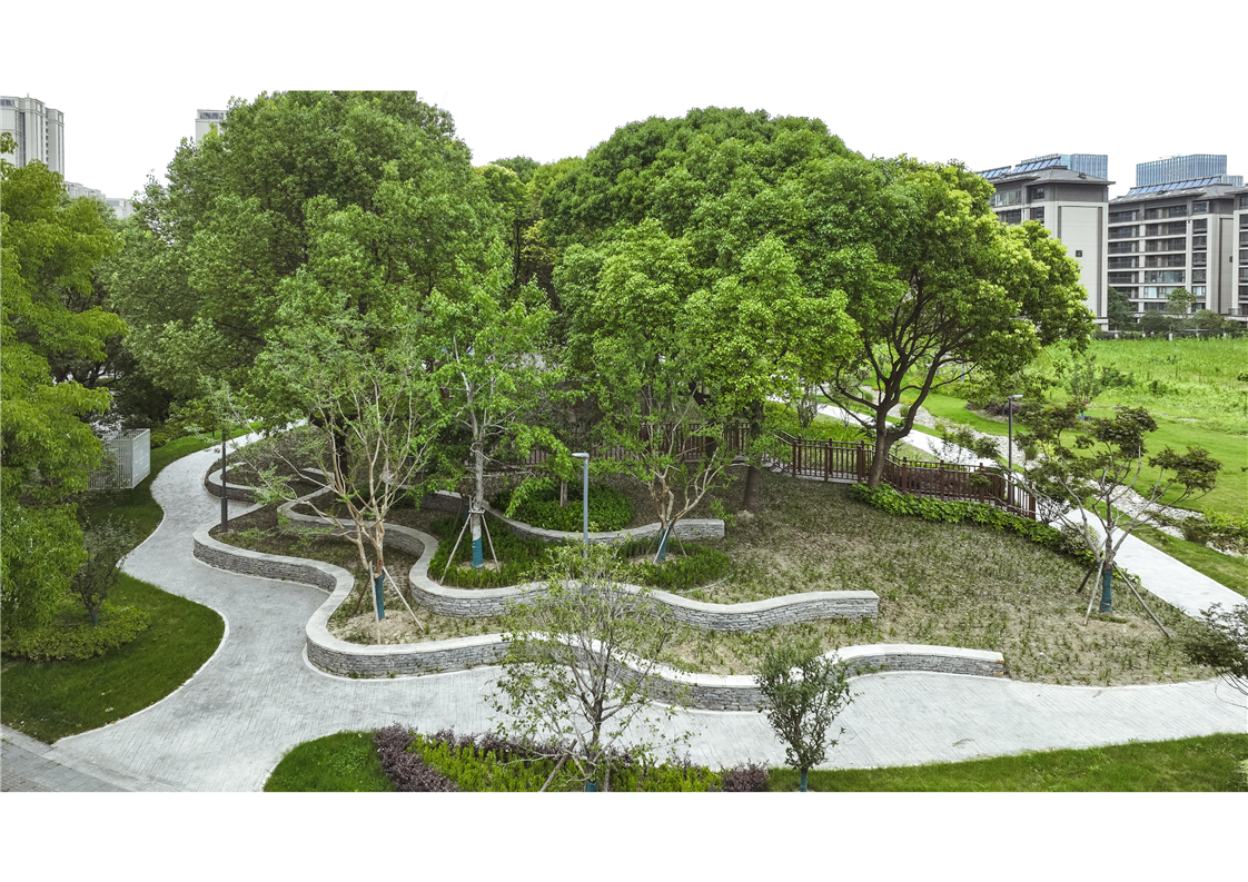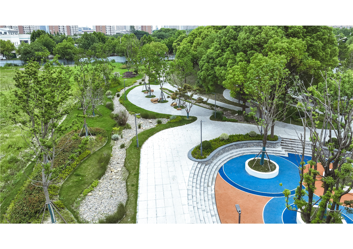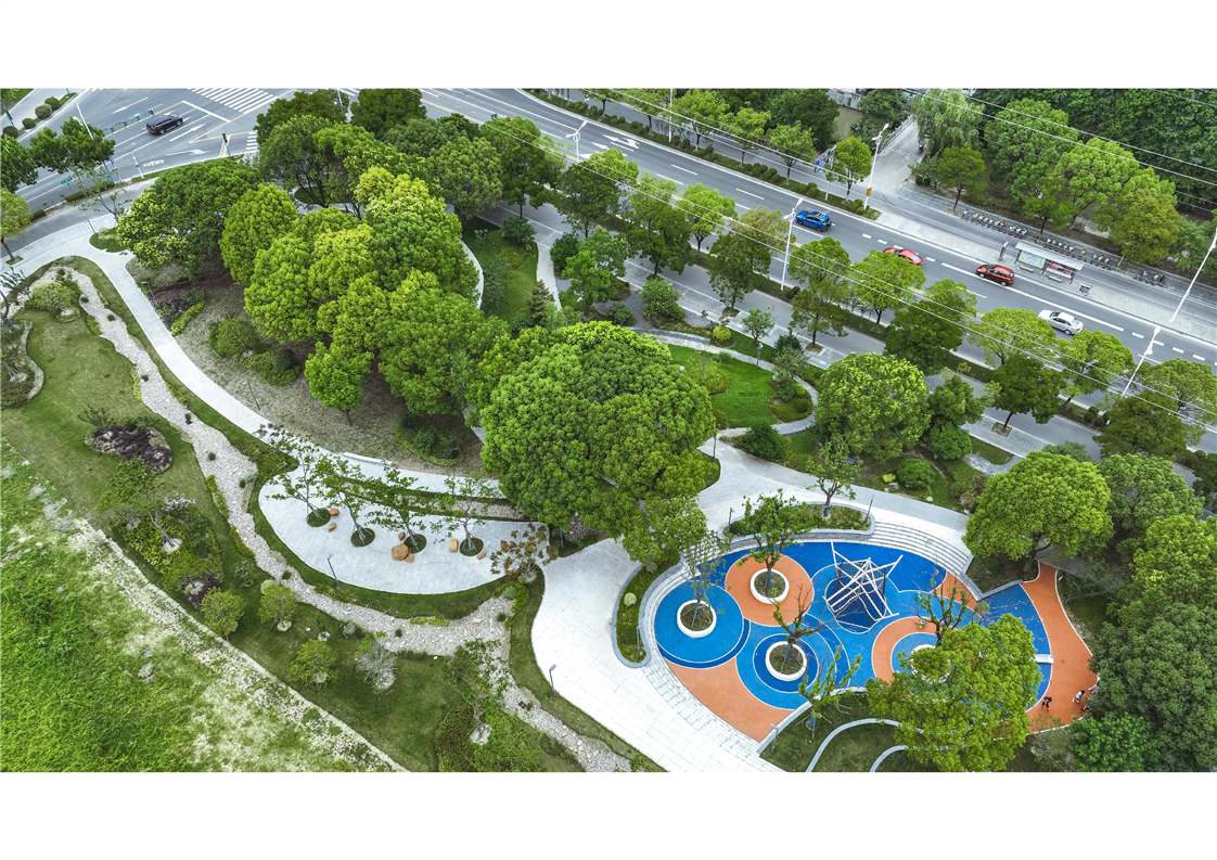 “江帆花園”口袋公園位于振興中路與江帆路西北角,提升改造面積約5800平方米。項(xiàng)目充分考慮周邊學(xué)校及居民不同人群使用需求,拓展場(chǎng)地可利用價(jià)值,利用現(xiàn)有地形高低差打造下沉式休閑廣場(chǎng)、兒童無動(dòng)力攀爬樂園以及可拾階而上的林下木平臺(tái),打破因高差產(chǎn)生的地塊割裂感。同時(shí),在保留原有大樹的基礎(chǔ)上種植烏桕、紅楓、楓香等色葉樹及地被植物增加綠化整體層次感,滿足市民多季節(jié)觀賞需求。提升改造后的“江帆花園”口袋公園成為一個(gè)兼具生態(tài)性、趣味性和實(shí)用性的城市公共空間,有力地提升了社區(qū)環(huán)境品質(zhì),也極大地豐富了周邊居民的生活休閑方式。