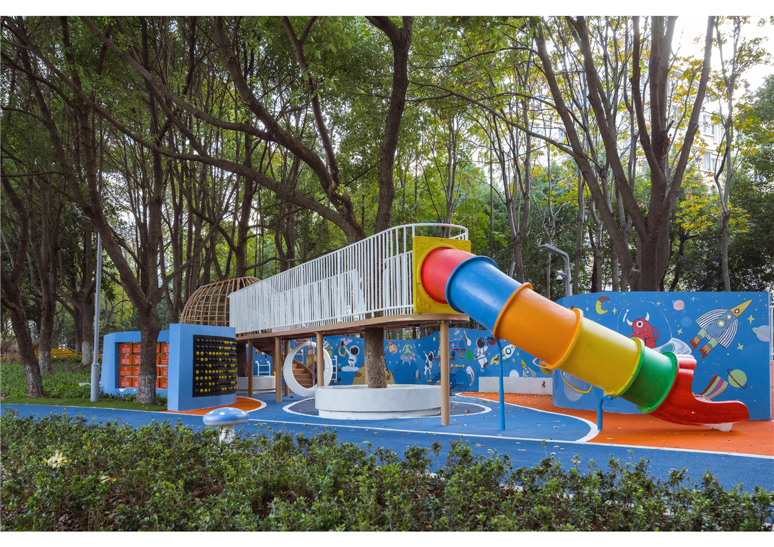 前溪小游園:項目位于南苑東路前溪公園內,提升改造總面積約22800m2(含水域6640m2)。該區域原狀存在園路通行性差、功能布局不完善、空間利用不足、配套設施陳舊、主題特色不突出、標識性不強等問題。本次提升從“空間重塑、交通引導、場景打造、生態融入”著手,以“幻彩如夢”——童趣公園為設計理念,以重塑園路,完善交通流線;優化空間布局,完善功能;增加兒童元素,突顯童趣主題;融入互動科室裝置,增加參與性四方面為重點,打造兒童友好特色主題公園。通過整體提升改造為市民提供一片可休憩、能玩樂、漲知識、強體魄的多元化綠色共享空間,為兒童創造一處戶外生活的“城市客廳”。