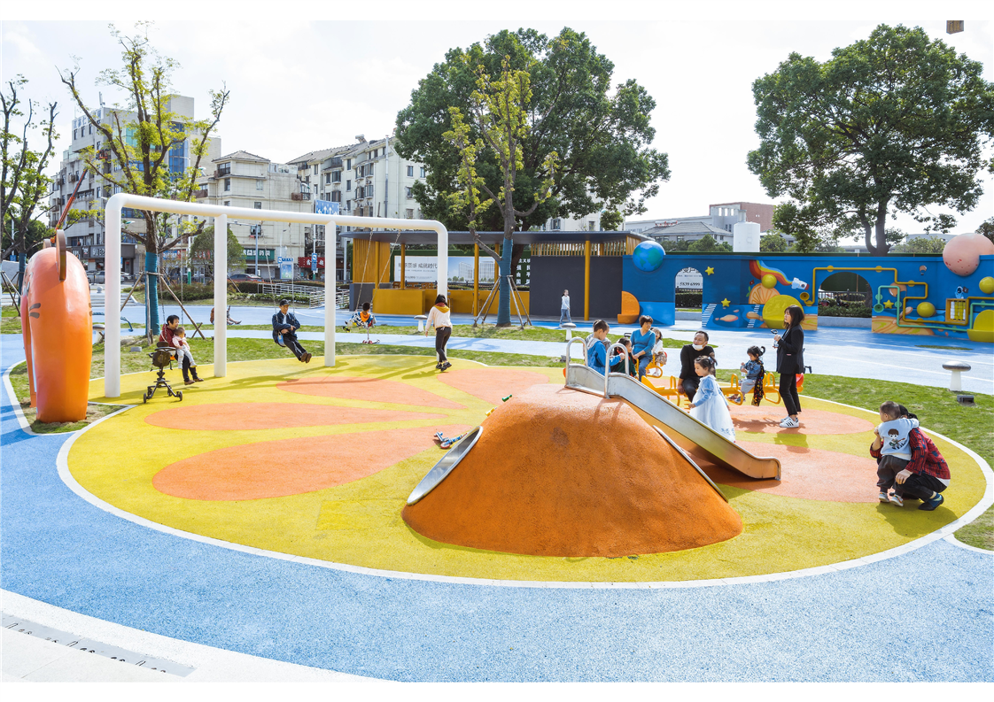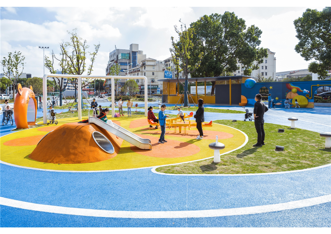橙趣無限位于張家港市長(zhǎng)安南路與南環(huán)路交叉口,提升改造面積約2600 m2采用下沉式設(shè)計(jì)以減少外圍道路對(duì)活動(dòng)人員影響內(nèi)置多功能活動(dòng)空間,結(jié)合兒童互動(dòng)景墻設(shè)置室外驛站,增加無障礙坡道夜景燈,打造設(shè)施人性化、功能更完善、環(huán)境更優(yōu)美的街心小公園。