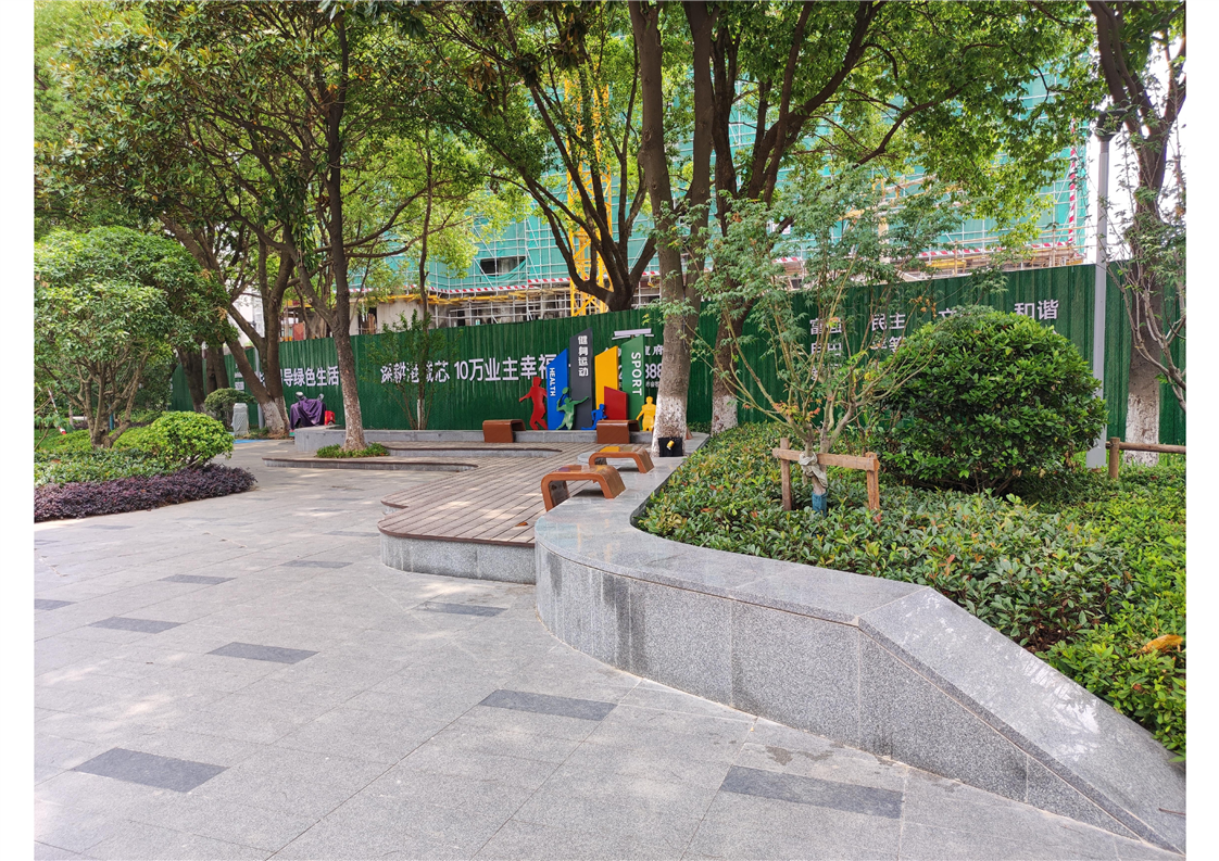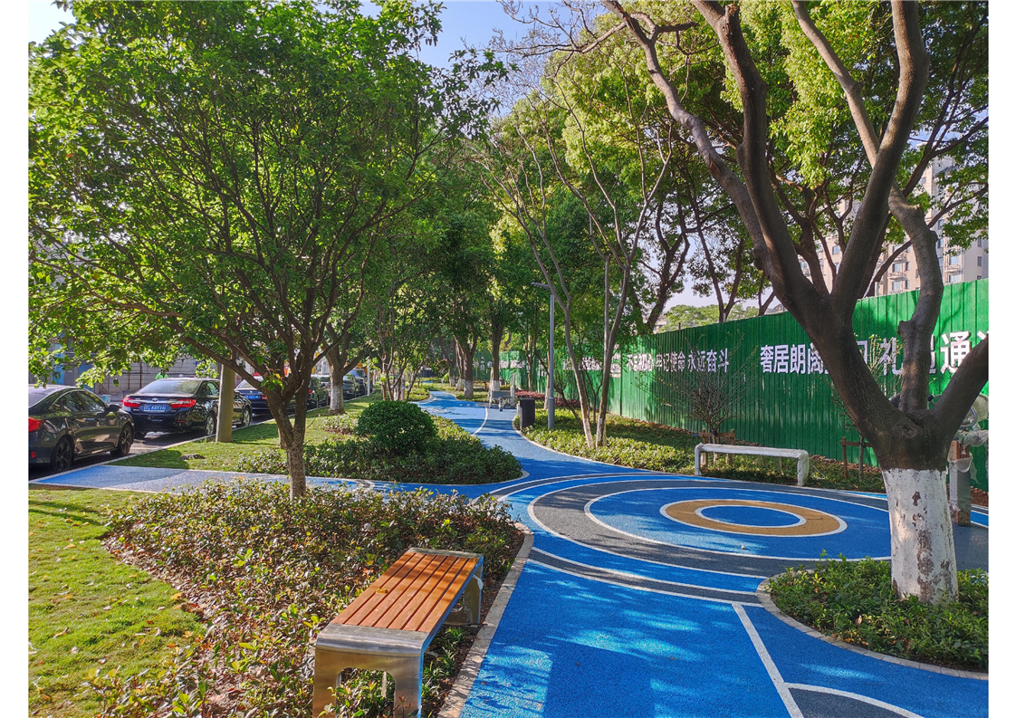 綠林仙蹤:位于張家港市龍潭路東側、拾房園路南側,南鄰航楊新村,西側緊鄰龍潭路,北側為張家港市游泳館,其他方向住宅為通運新村,交通便利,周邊生活配套設施齊全。項目原狀主要為大喬木,林下空間利用率低。本項目的建設以“運動、健康”為主題進行設計打造,通過建設形象標識、休憩廊架、兒童樂園、健身場地以及魅力花谷等,達到出門見綠、就近賞景、運動健身的效果。這座占地3000多平方米的公園,綠樹成蔭,步道、健身設施、座椅等設施一應俱全,成為附近居民打卡的好去處,街頭“死角”變身“城市花園”, “方寸之地”盡顯民生幸福。