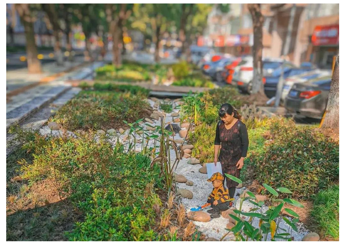 東渡小游園:位于梁豐路與園林路交叉口,改造前周邊住宅、商業用房聚集,交通停車混亂,原小區南綠植老化,綠地功能比較單一,缺乏休閑停留及游憩空間。2020年,市住建局園林處通過對場地原狀調研分析、同時結合周邊居民的需求,對該地塊進行了重新規劃調整,涉及改造提升區域5000多平方米。改造中充分利用原有資源,保留了樹形較好的樹木;針對沒有停留空間的情況,結合“東渡”元素,增設船形花壇坐凳,增加了居民活動休憩場地;增設相應車位,以滿足周邊車位的使用,規范了停車;同時鋼渣透水瀝青的首次運用及綠地功能提升與雨水花園的結合,實現綠化景觀全透水海綿化改造,項目作為海綿化改造示范項目得到推廣。
