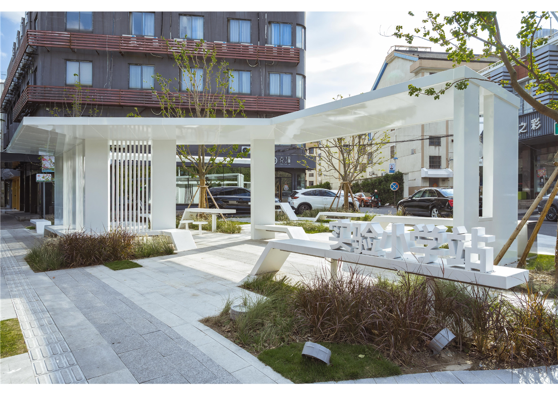 最美站臺:位于張家港市河西路與鐘鼓弄三角,面積215 m2,項目改造以車輛的“川流不息”為靈感,采用線性鋪裝、綠化、配置起伏多變的吧臺坐凳,將原有的交通綠島打造成一個可游可憩的休閑小島。公交站臺與休憩廊架進行一體化設計,增強場所的識別性和等待的舒適感,打造最美公交站臺。