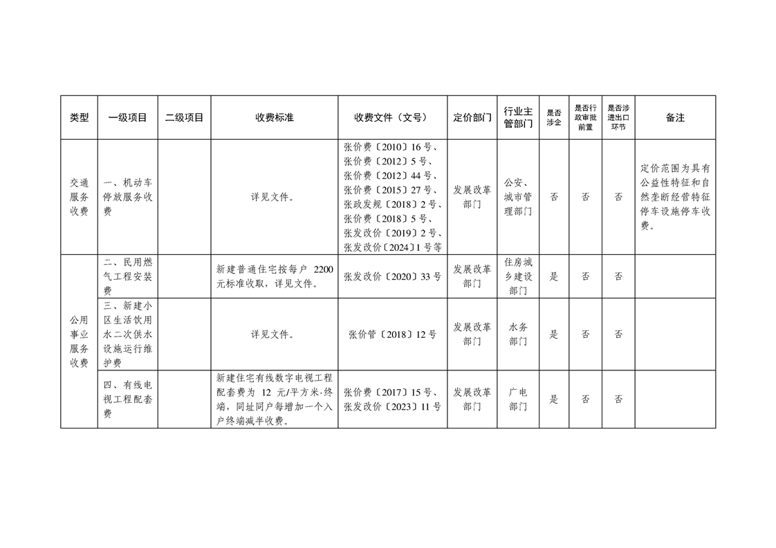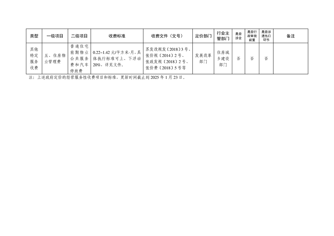張家港市市級政府定價管理的經營服務性收費目錄清單(2025年2月20日更新)