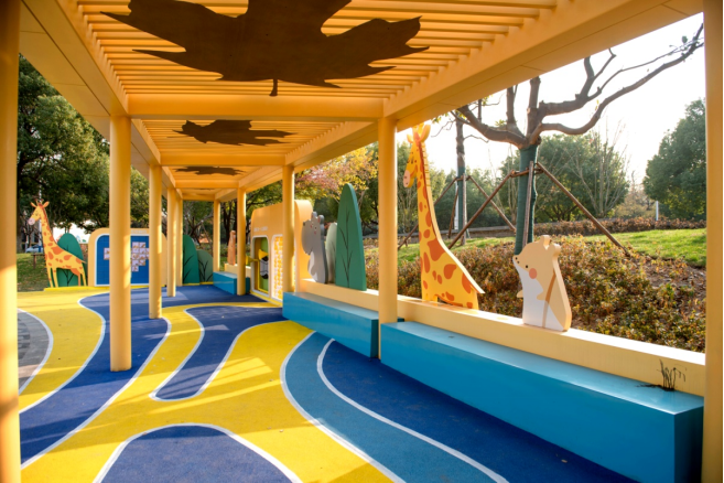構建多元活動場景。為滿足市民的日常休閑活動需求,優化重塑后,在場地內設置各類功能場景,打造多功能活動廣場、健身區、兒童游樂區、互動游戲墻和廊架等空間區域。設置音樂墻、動物雕塑、墻體游戲設施,讓兒童找回屬于自己天性與快樂;配套功能健身器材,讓市民在茶余飯后有伸展的空間;打造多功能活動廣場,為志愿者文明宣傳活動提供更多可能;增設志愿者服務驛站,與文明實踐中心形成文明宣傳的聯動,增加更多社交可能。