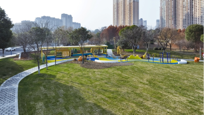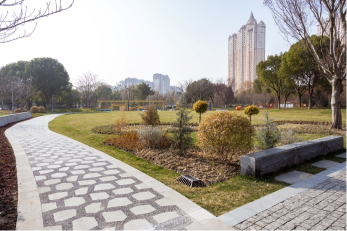 引入豐富植物品種。結合海綿城市建設,園內排水以鋪裝自然草溝排水為主,開放式綠地中以上中下三層群落式植物栽植,營造穩定生態體系。植物配置中,保留原有大樹,以彩化為特色,增添彩葉樹、花灌木,通過自然式配植的手法,營造和諧綠化景觀。同時,預留充足草坪空間,為市民提供休閑、露營及周末打卡的理想場所。
