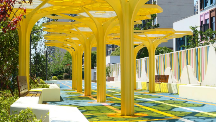 除了江帆花苑口袋公園之外,梁豐幼兒園(南校區)口袋公園也已正式完工,通過地面裝飾彩繪、卡通景觀小品等方式,為學生上下學創造獨特的集散空間、安全的緩沖空間,也成為個人放松交流的活動空間、舒適休閑的綠色空間。