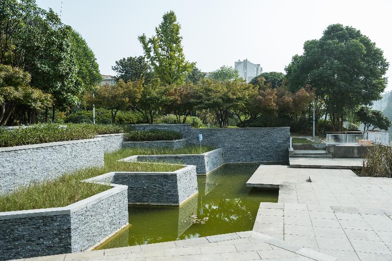 城市界面增添“聽聽風(fēng)”入口標(biāo)志、“紙飛機(jī)”主題雕塑與趣味坐凳,搭配組合花境,點(diǎn)亮公園形象。梳理原場地過于郁閉的植被,營造舒朗開闊的綠化空間,優(yōu)化空間體驗(yàn);打造濱水臺地花園,提升駁岸形象。貫通港城大道橋下濱水綠道,激活濱水空間的活力,讓城園融合界面的環(huán)境品質(zhì)煥新升級。
