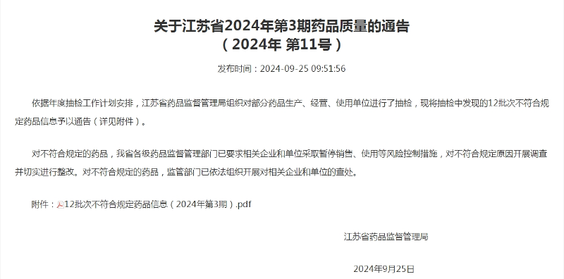 附件:12批次不符合規定藥品信息(2024年第3期)
