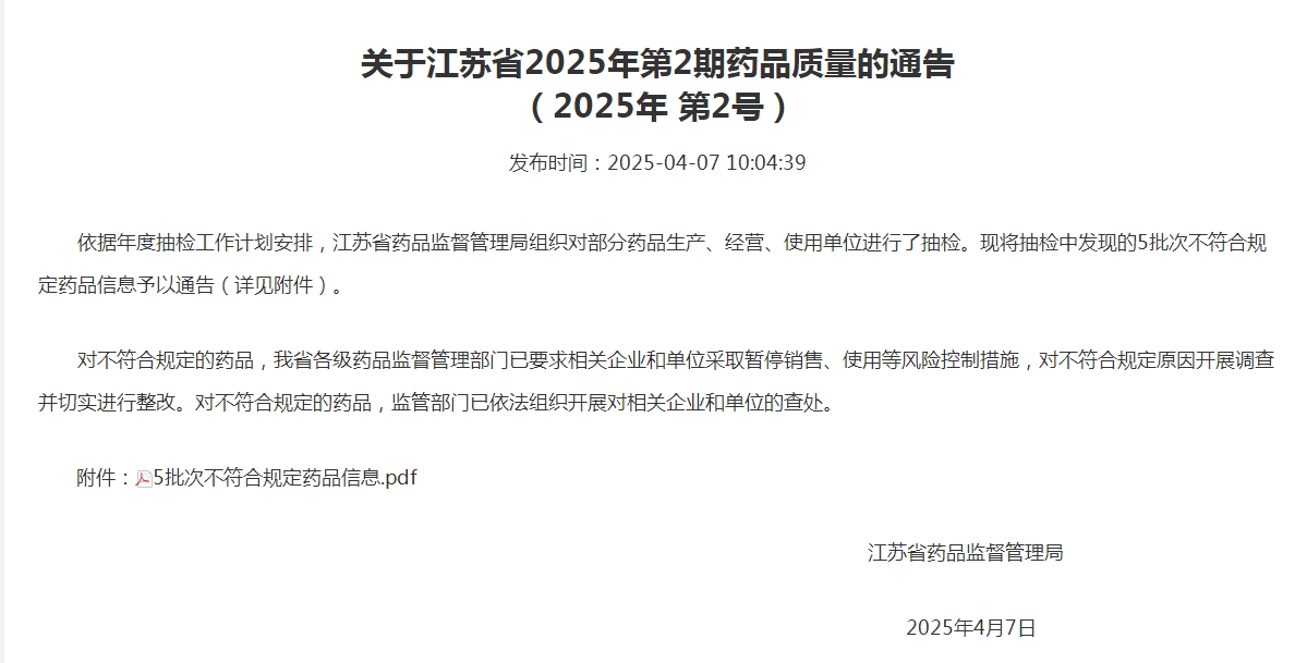 轉載來源網站:江蘇省藥品監督管理局