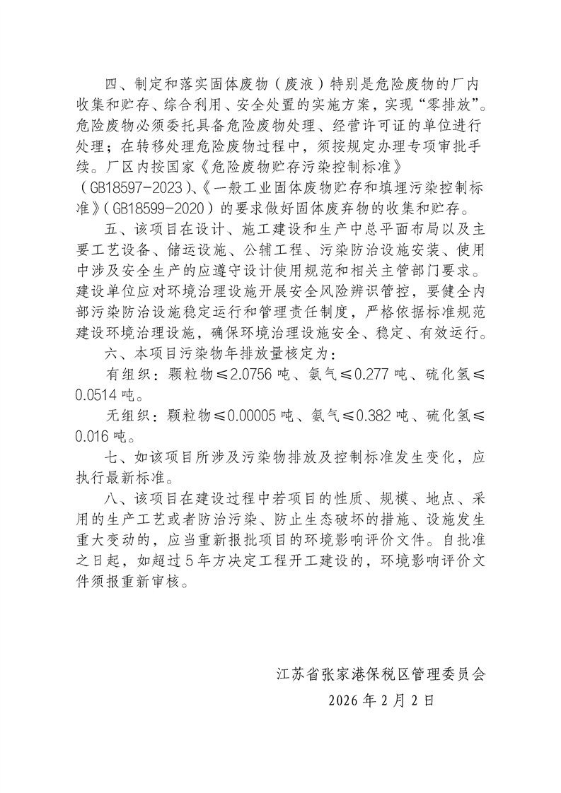 根據建設項目環境影響評價審批程序有關規定,經審查,江蘇省張家港保稅區管理委員會對以下建設項目環境影響評價文件作出審批決定。現將作出的審批決定予以公告。