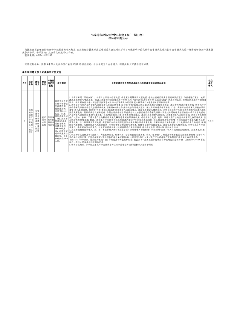 張家港市北部醫(yī)療中心新建工程(一期工程)擬環(huán)評審批公示