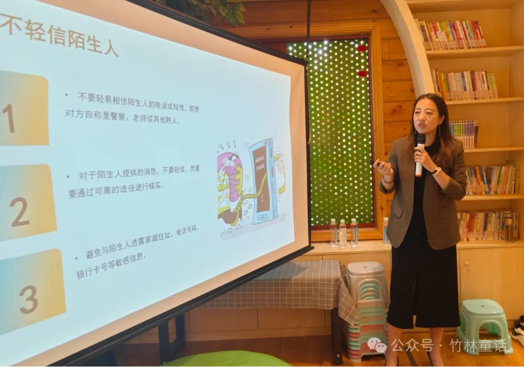 除了常見的電信網(wǎng)絡詐騙以及落單兒童安全防范教育之外,君橋律師事務所的邱嵐嵐律師帶著孩子們觀看了各種新型詐騙方式,尤其是AI技術使詐騙變得很容易讓人上當,現(xiàn)場的孩子和家長對AI真假獼猴式的詐騙手段震驚不已,同時小孩的心中已經(jīng)種下一顆安全的種子,孩子們紛紛提到,回家要跟父母建立一個只有他們自己才知道的暗號。