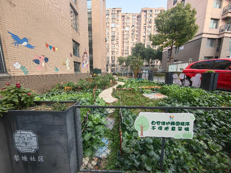 馨塘社區(qū)東邊有一塊約100㎡的閑置地塊。項目將社區(qū)空地改造成小菜園,邀請老黨員、在職黨員、種花達人、親子家庭等認領(lǐng)地塊,變身“共享責任人”、小區(qū)“馨園丁”,并帶領(lǐng)居民群眾自己動手扮靚墻角邊緣,改造舊輪胎,美化窨井蓋,提升園地顏值,還將居民群眾認領(lǐng)種植的蔬菜用于走訪慰問、愛心幫扶,形成共享服務,全年服務居民群眾超1500人次。項目以多樣“微陣地”出圈,成功打造可食可觀的社區(qū)一角,切實為居民群眾幸福生活加碼,暢通社區(qū)治理“微循環(huán)”。
