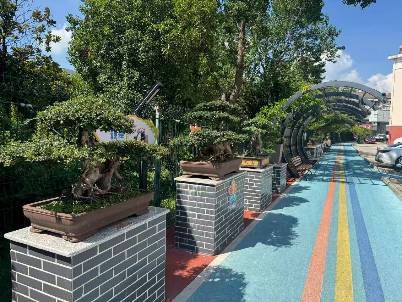 2025年,城北社區在城北新村34幢西側精心實施“藤語彩徑”亮化工程,建成一條長約180米、寬約3.5米的特色步道。起點處,將原本廢棄的簡易房拆除,改造為拱形花架,既消除了安全隱患,又賦予空間嶄新活力;中間,鋪設了絢麗的彩虹步道,并分段布置C字形花架,配備休閑座椅,供居民群眾休憩;同時,搭建紫藤廊架,安裝路燈與廊架氛圍燈,提升居民群眾夜間在此處活動的安全感與氛圍感。項目還設置了共享盆景臺,鼓勵居民群眾自行提供盆栽進行展示,讓大家共同參與美化社區環境。建成后,該項目提升了社區環境品質,豐富了居民休閑空間,形成集休閑、娛樂、觀賞、共治為一體的人居環境,切實增加了居民群眾獲得感,已成為鄰里休閑、賞景的熱門打卡地。