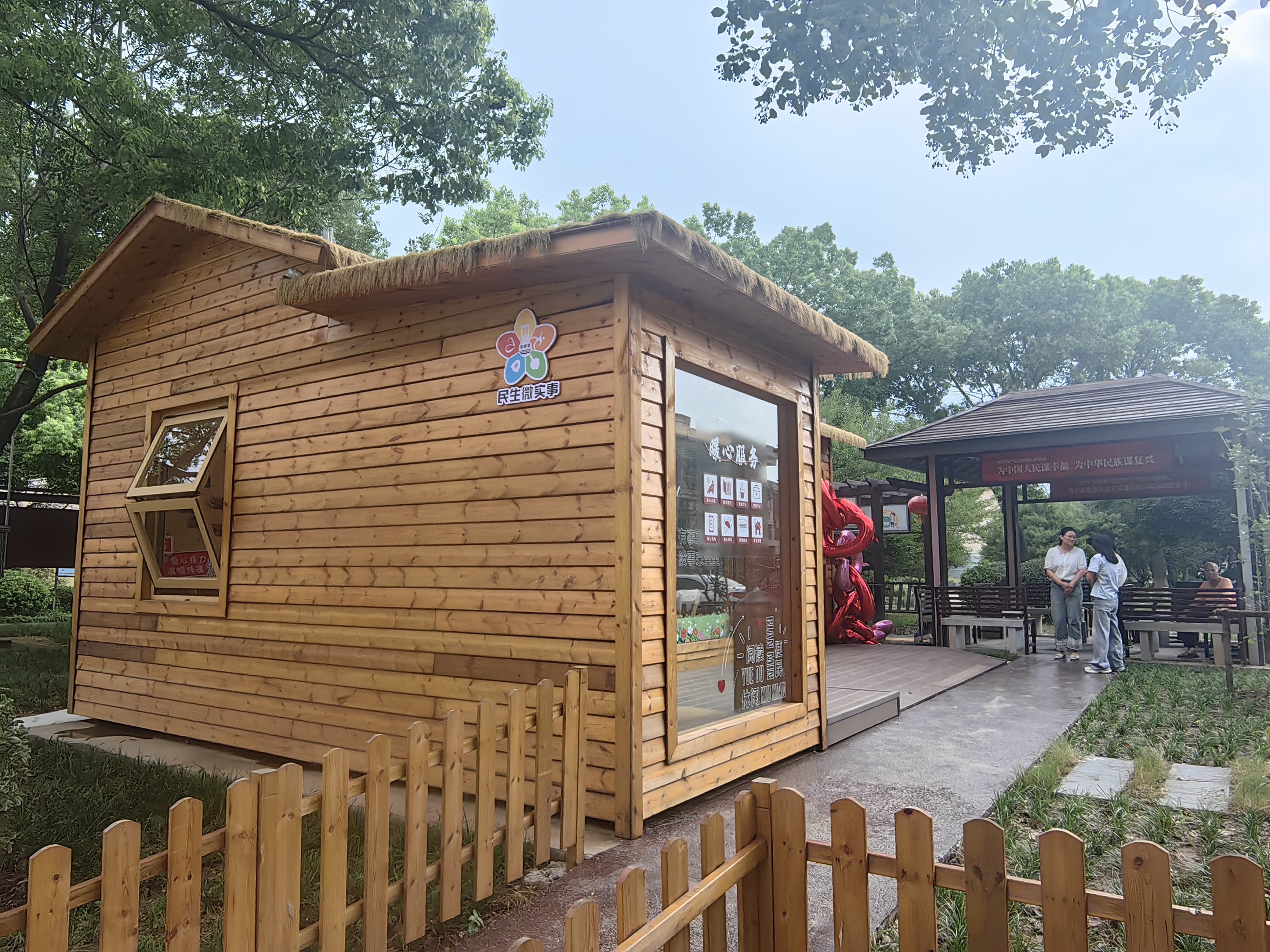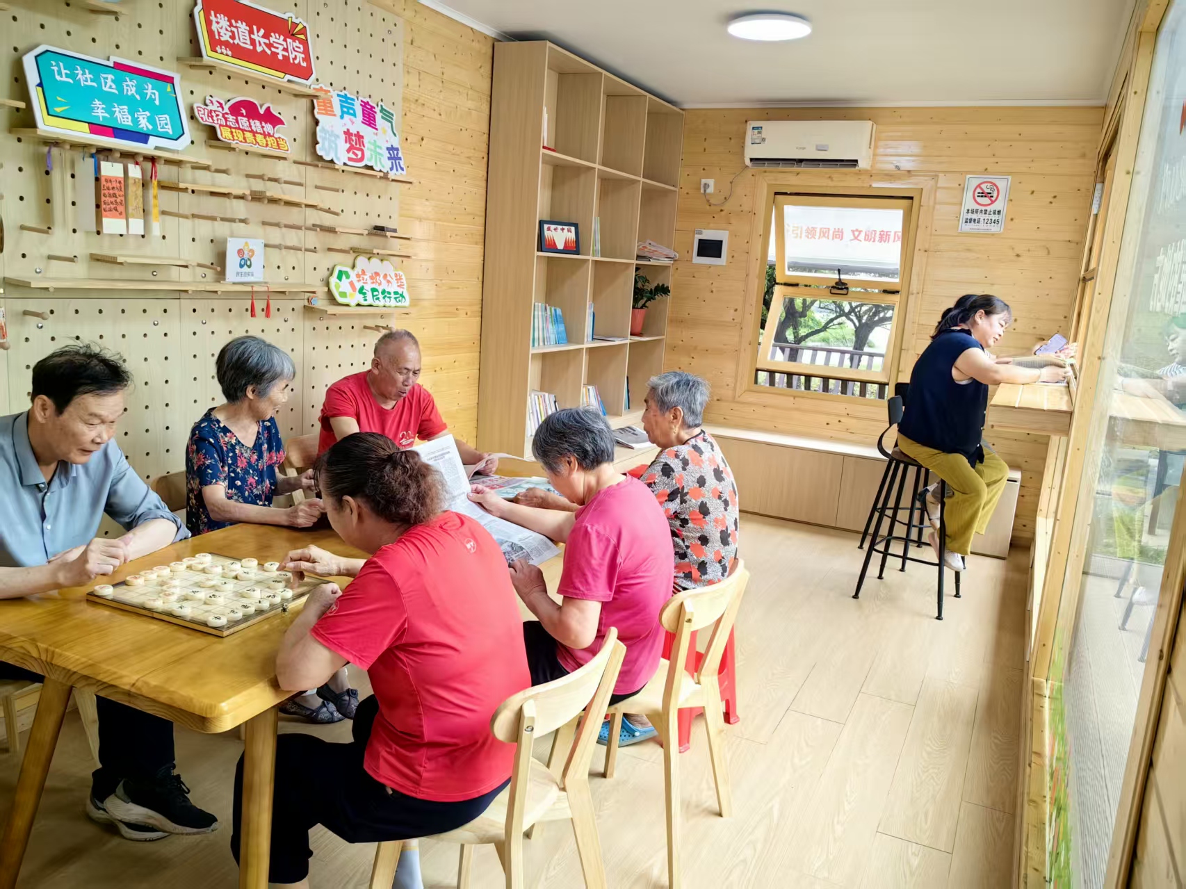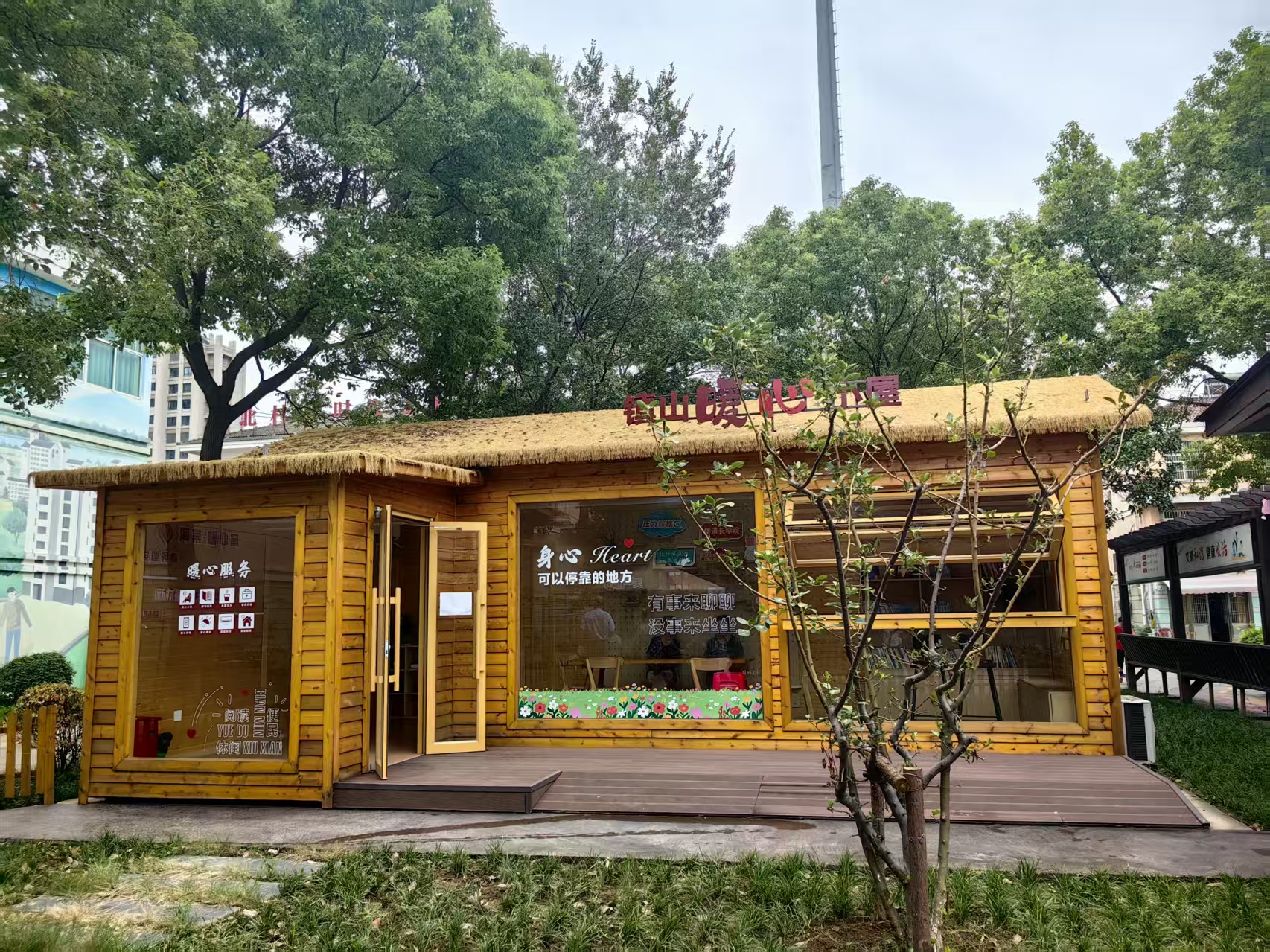 鎮山小區一期的中心地帶有一座小涼亭,是居民們日常聚集的熱門場所。然而,時間久了,這里夏日悶熱難耐,冬日雨雪時陰冷潮濕。社區網格員走訪調研收到了居民的訴求。經過充分討論,社區合理規劃空間,并鏈接整合市鎮村資源對涼亭旁的區域進行改造,一座多功能的溫馨小屋全新亮相,成為居民家門口的“幸福中轉站”。走進小屋,便民角貼心配備常用工具、急救用品、充電設備等,為居民日常生活排憂解難;讀書角整齊陳列各類書籍,滿足不同年齡層的閱讀需求;舒適的休閑桌椅環繞擺放,為老年人提供了悠閑的休憩、聊天場所,讓他們在此盡享愜意晚年;這里也是鄰里互動的活力空間,大家共同制作手工藝品,在歡聲笑語中增進鄰里情誼。此外,小屋還承擔著居民議事功能,居民們在此共商社區事務,暢所欲言,積極參與社區治理,凝聚共建美好家園的強大合力。