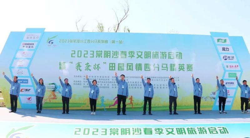 接下來,請主席臺領導、嘉賓共同為2023常陰沙春季文明旅游啟動暨“賽康杯”田園風情四分馬精英賽鳴槍發令。