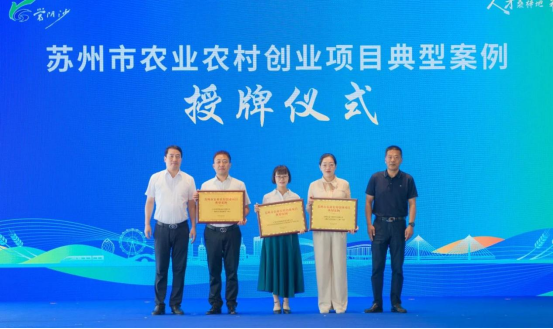 下面,進行蘇州市農業農村創業項目典型案例授牌儀式。有請蘇州沃泰生物科技有限公司總經理錢蕾,江蘇中芯種業科技有限公司總經理黃邦連,江蘇啃饞你食品有限公司總經理朱平上臺,請蘇州市農業農村局四級調研員施正祥、張家港市農業農村局局長沈浩上臺,為三位獲獎代表授牌。
