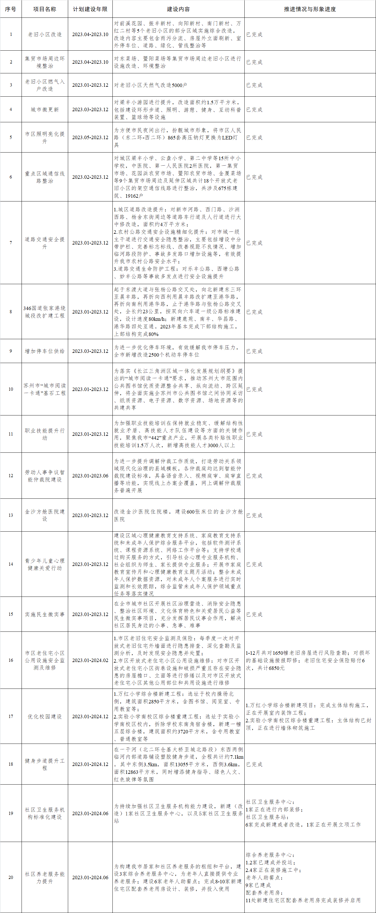 2023年我市民生實事項目進展情況(4季度)