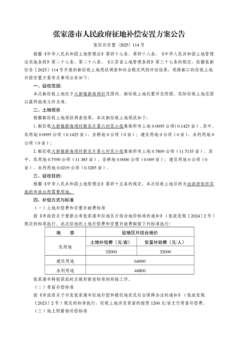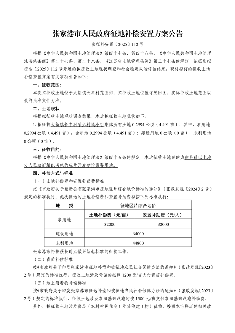 征地補(bǔ)償安置方案公告(張征補(bǔ)安置[2025]23號(hào)、111號(hào)、112號(hào)、114號(hào))