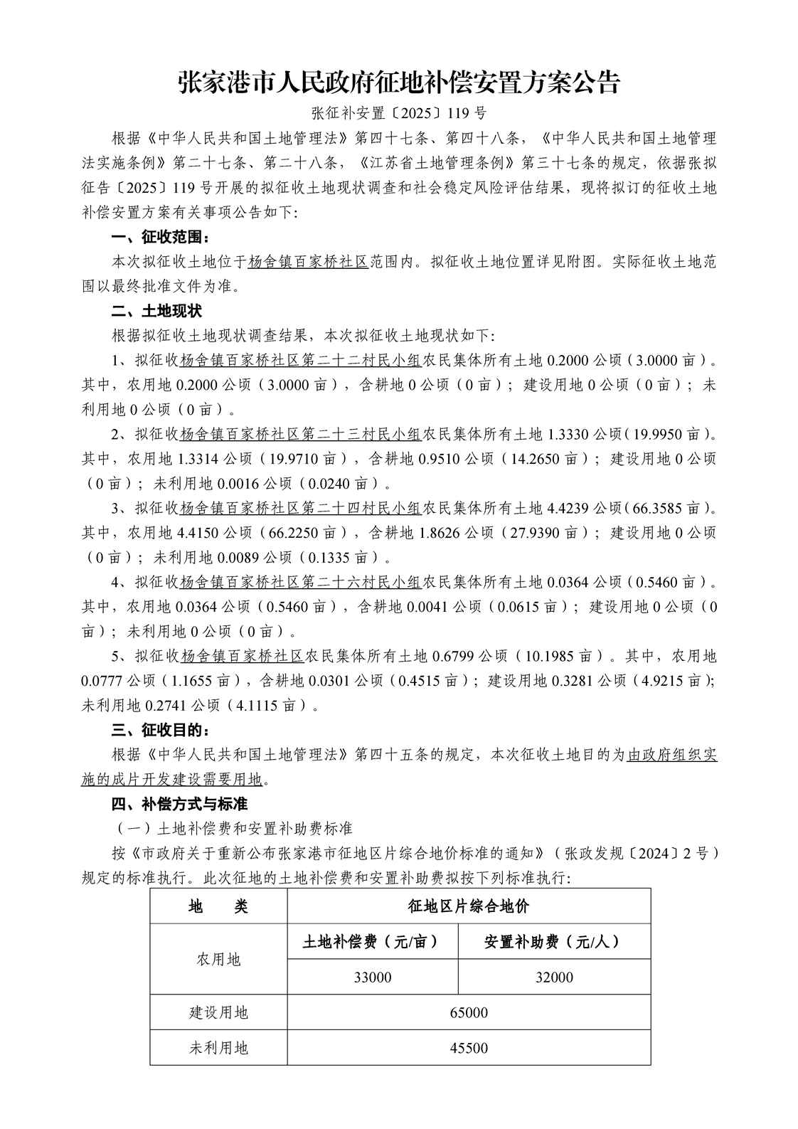 征地補償安置方案公告(張征補安置[2025]119號)