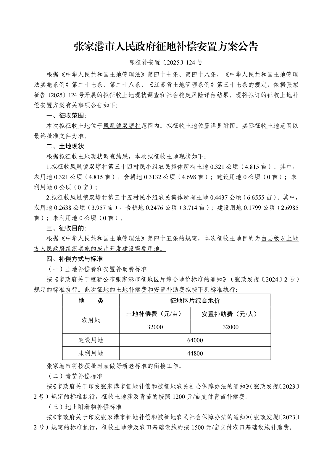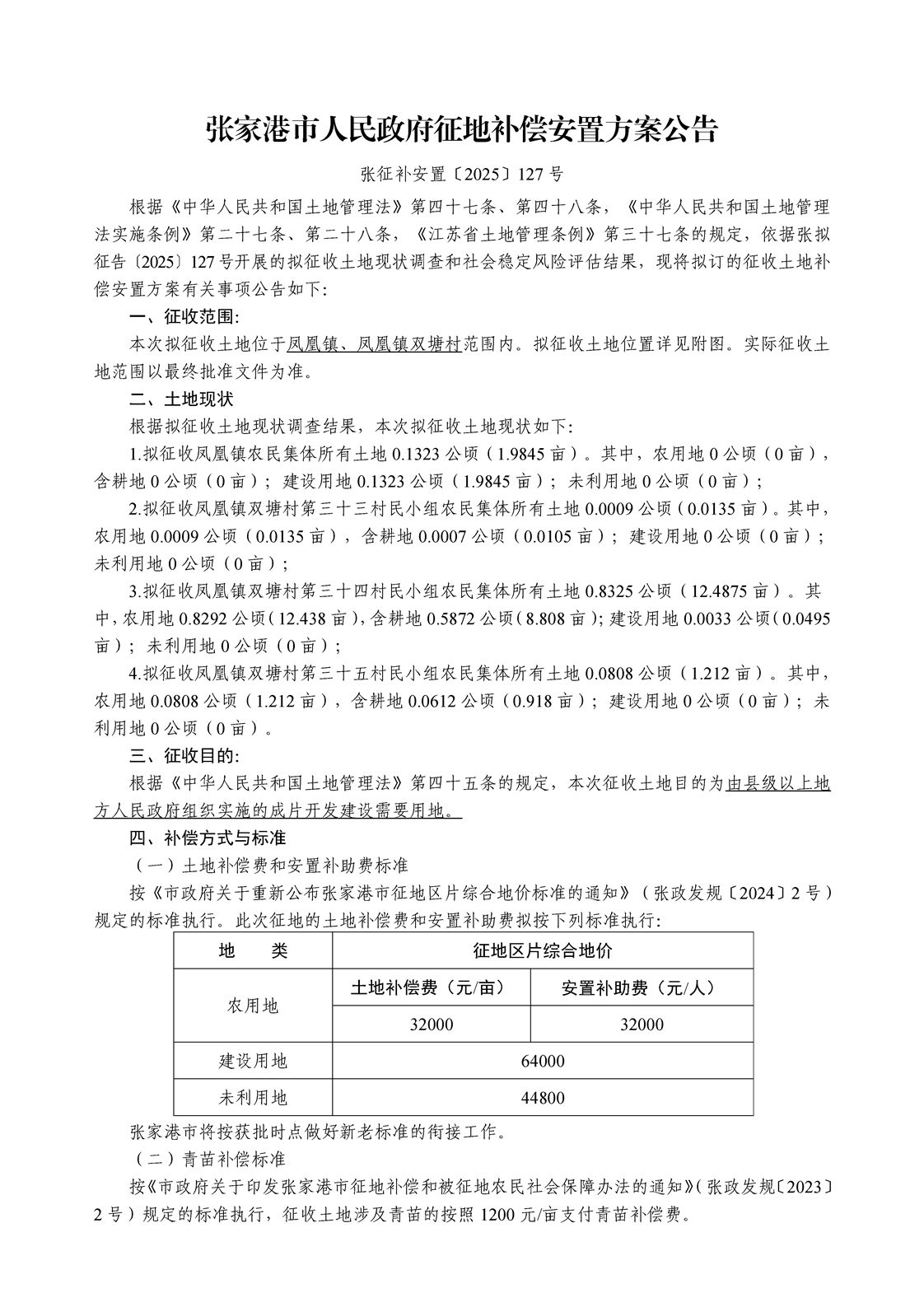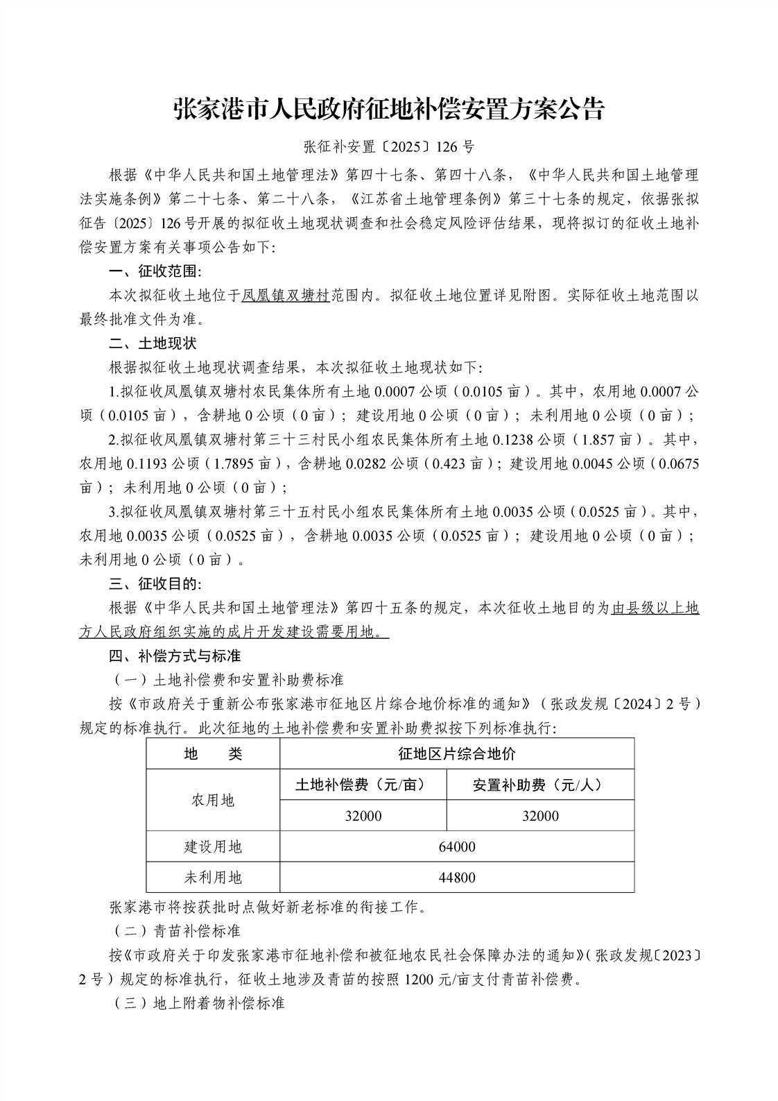 征地補償安置方案公告(張征補安置[2025]123號、124號、125號、126號、127號)