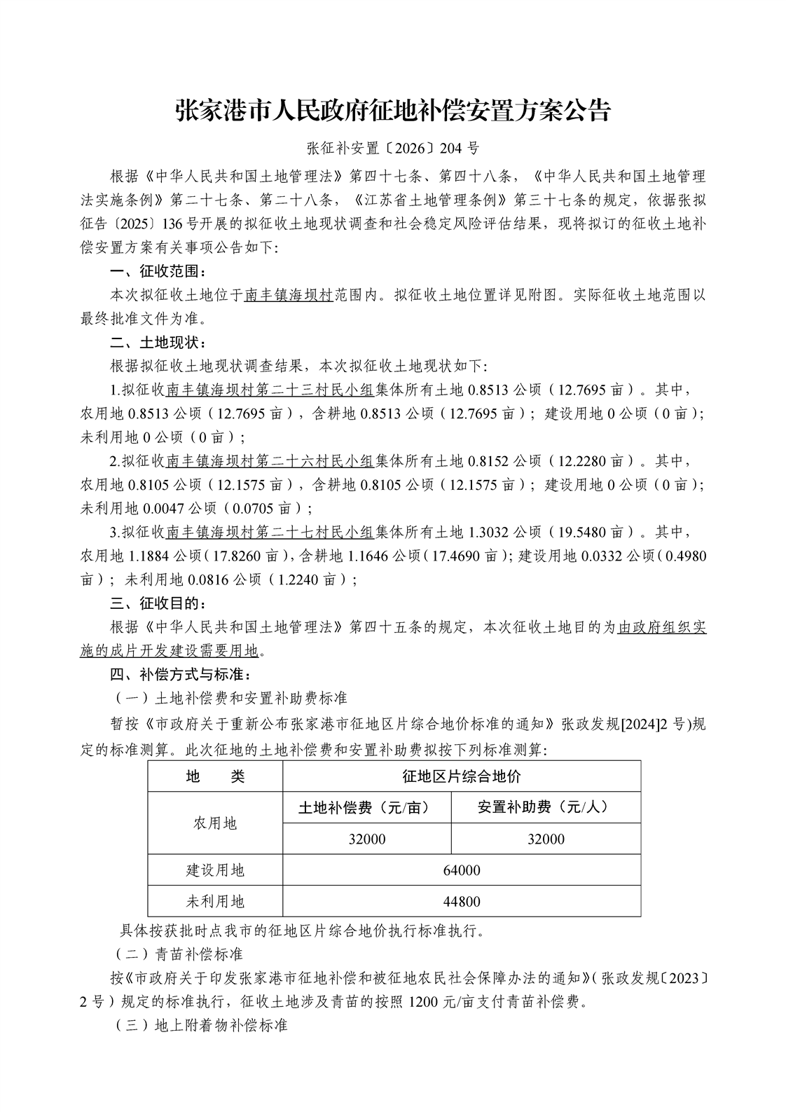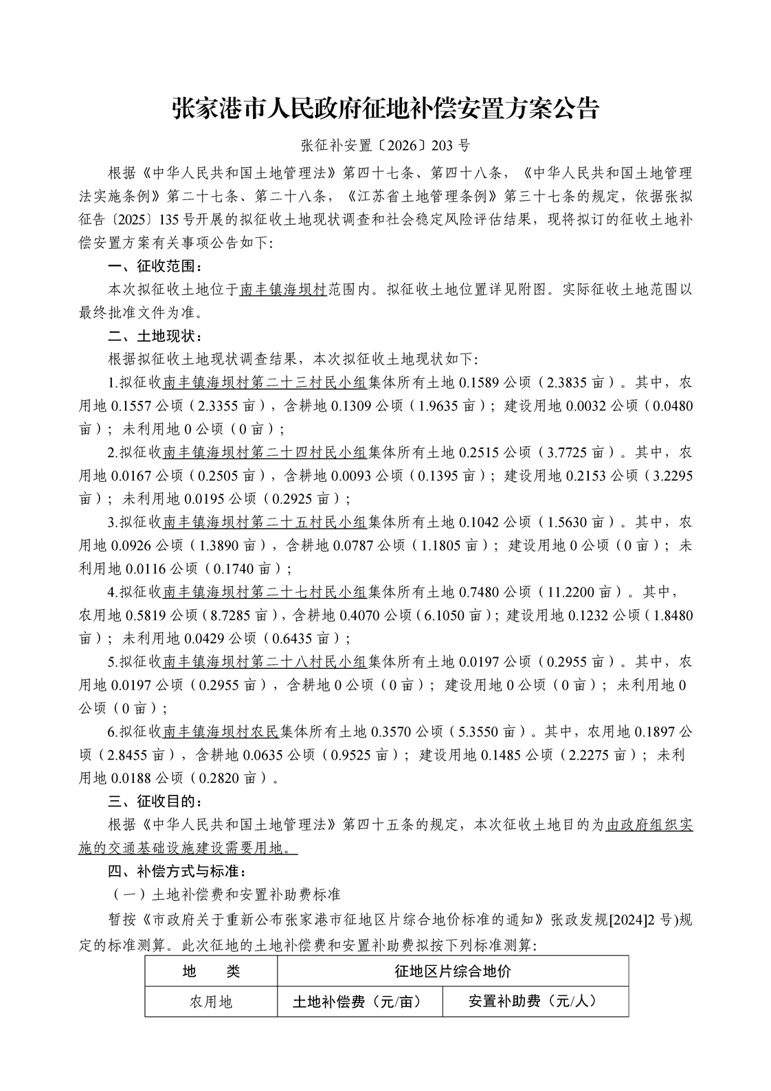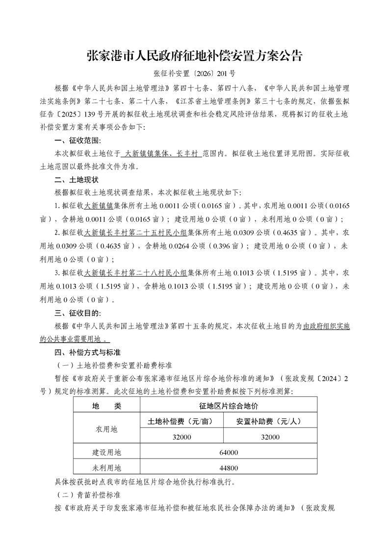 征地補(bǔ)償安置方案公告(張征補(bǔ)安置[2026]201號(hào)、202號(hào)、203號(hào)、204號(hào)、205號(hào)、206號(hào))