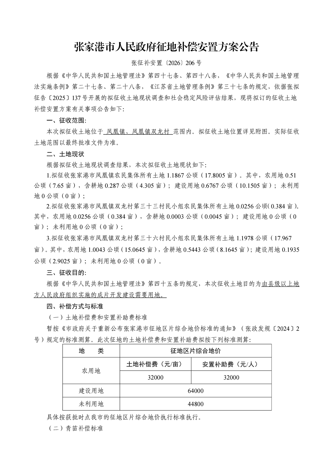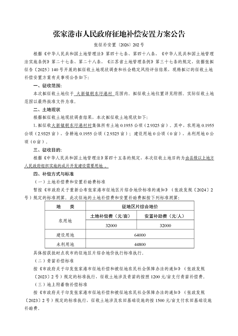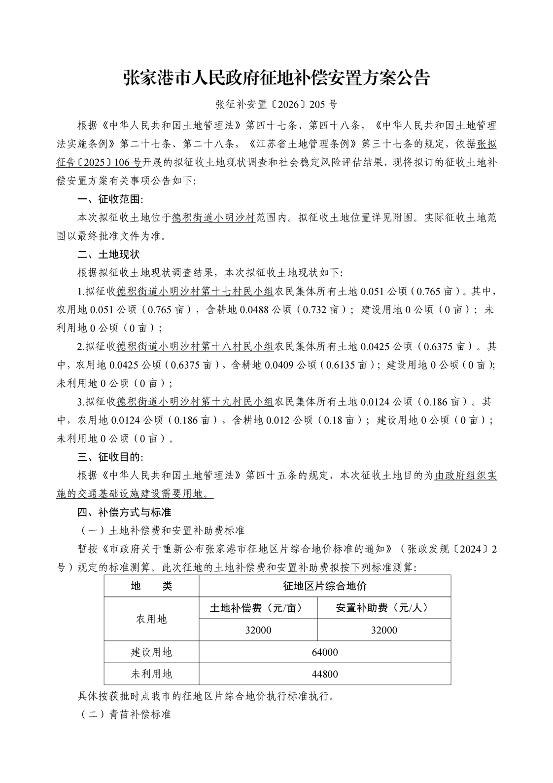 征地補(bǔ)償安置方案公告(張征補(bǔ)安置[2026]201號(hào)、202號(hào)、203號(hào)、204號(hào)、205號(hào)、206號(hào))