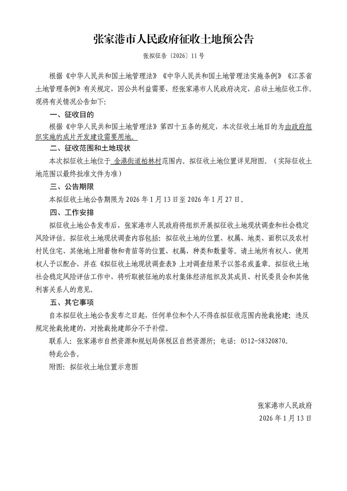 征收土地預(yù)公告(張擬征告[2026]11號)