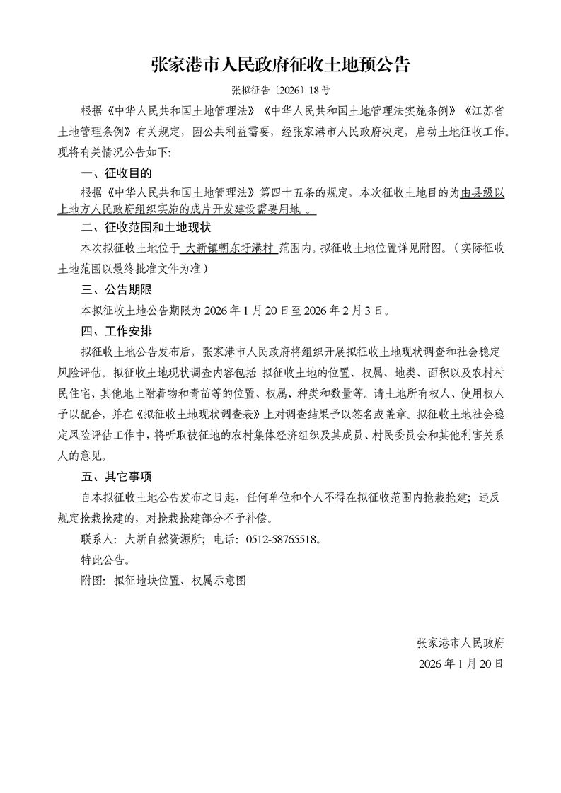 征收土地預公告(張擬征告[2026]18號)