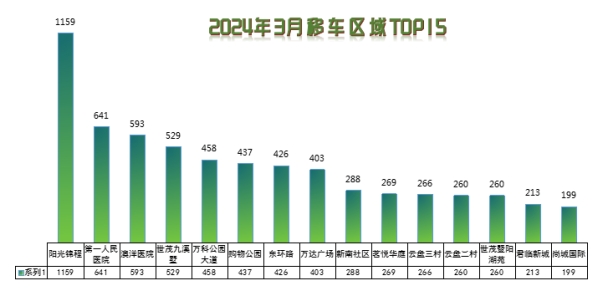 移車多發區域以小區、商業圈、寫字樓等人員密集的地方為主,據統計,3月匯金花園、君臨新城移車訴求明顯下降;茗悅華庭、新南社區移車需求與上月基本持平;萬科公園大道、云盤三村移車需求明顯上升。