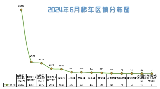 6月移車需求主要集中在經開區(楊舍鎮)二環內,占比63.27%;其次是高新區(塘橋鎮),占比11.69%;第三是經開區(楊舍鎮)二環外,占比10.31%。