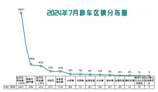 7月移車需求主要集中在經開區(楊舍鎮)二環內,占比61.67%;其次是高新區(塘橋鎮),占比11.47%;第三是經開區(楊舍鎮)二環外,占比9.70%。