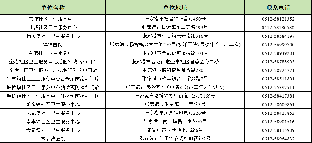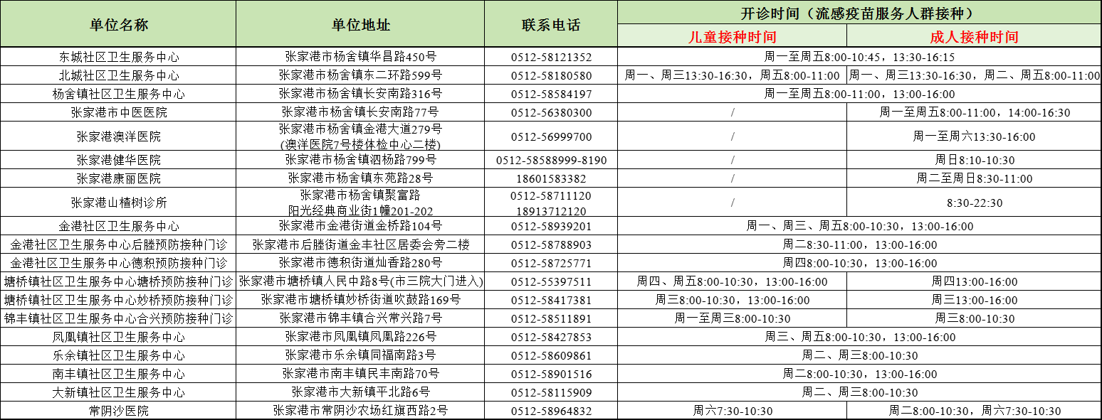 張家港市流感疫苗接種常規門診安排