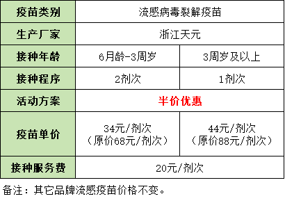 12月24日起我市部分預防接種門診開展流感疫苗(浙江天元流感病毒裂解疫苗)優惠接種活動,為全市人民健康保駕護航。