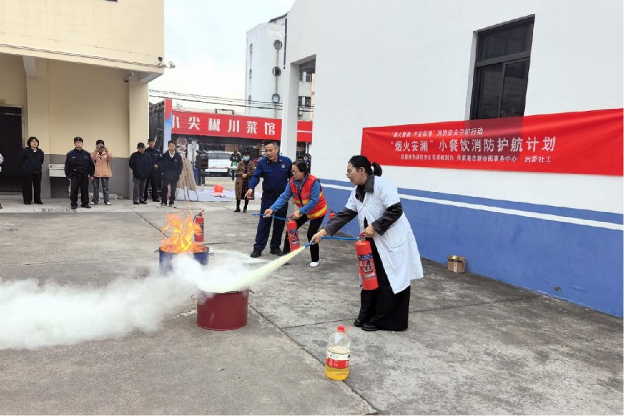 一是啟動“煙火安瀾”小餐飲消防護航計劃。11月4日,系列活動首場在西門社區(qū)小餐飲集中區(qū)域舉行,40余名經營者“沉浸式”體驗消防演練區(qū)、互動游戲區(qū)、主題市集區(qū)三大板塊。在演練區(qū),社工帶領參觀消防體驗館,消防員結合案例講解電氣燃氣隱患排查要點,以及滅火器“提拔握壓”和滅火毯的使用方法;在游戲區(qū),通過經營場景問答、隱患拼圖闖關等形式鞏固知識;在市集區(qū),整合多部門資源提供“雙改”政策解讀、消防普法咨詢、免費血壓測量及資料發(fā)放等一站式便民服務,實現“學、練、玩、問”一體化體驗。